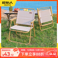 原始人折叠椅克米特椅户外露营椅子便携沙滩椅钓鱼椅凳子折叠椅子 卡其色木色架-加高款