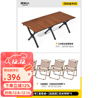 原始人蛋卷桌户外折叠桌便携式野餐桌椅露营装备用品野炊野营套装 铝合金120桌+加高木色克米特*4