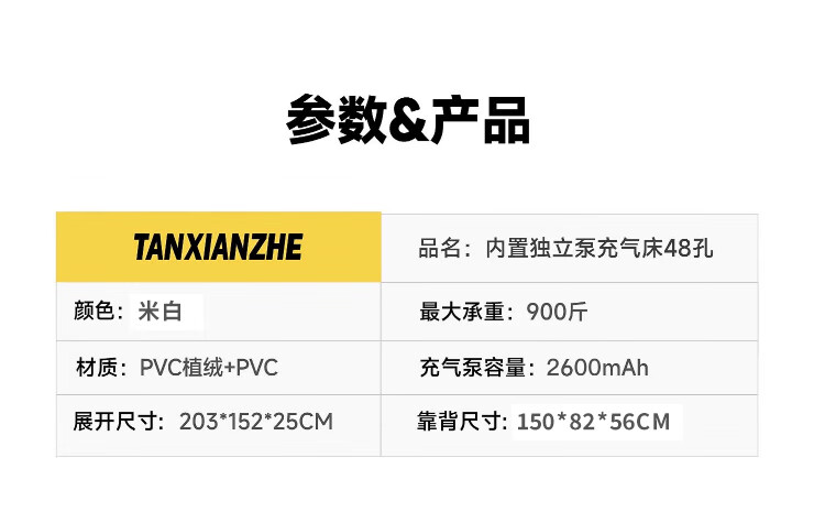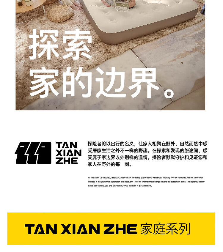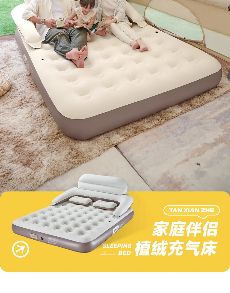 探险者(TAN XIAN ZHE) 户外气垫床充气床家用加大充气床垫加厚户外便携床 内置泵【三人】充气床+靠背