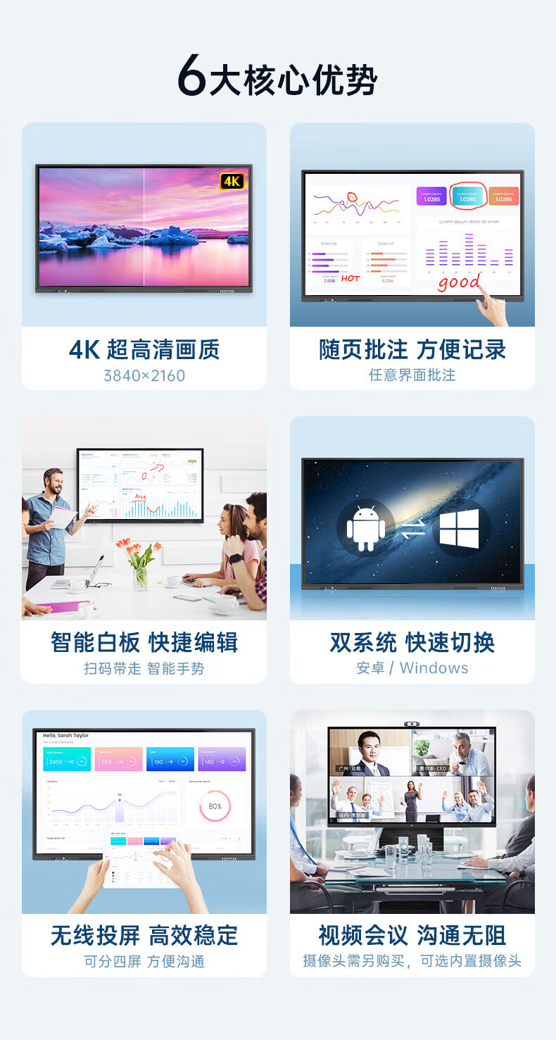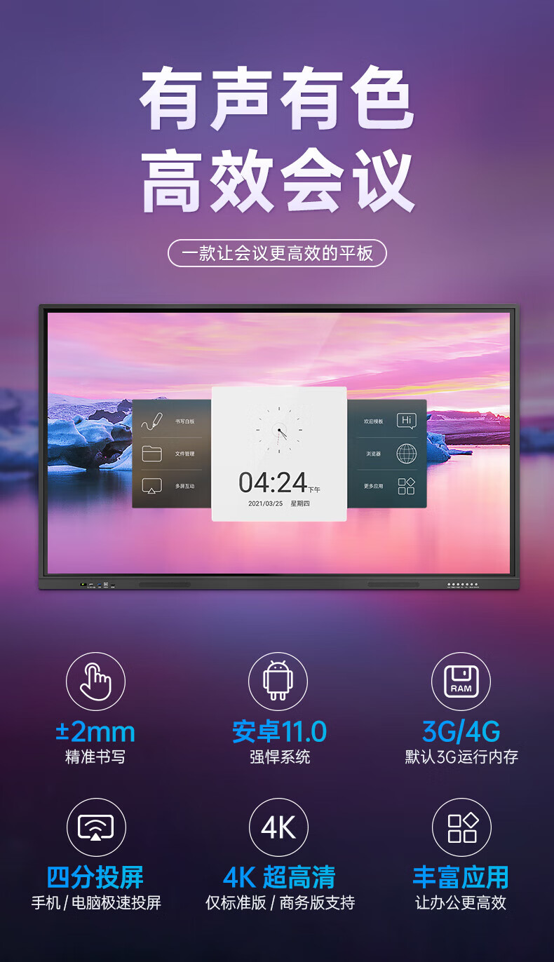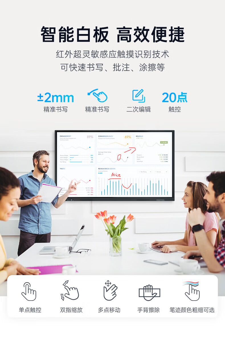 智能会议平板一体机多媒体教学电子白板多功能电视触摸屏显示器 WIN10系统I7/8+256 定制配置预付