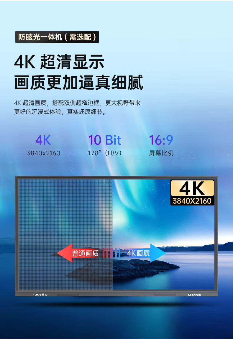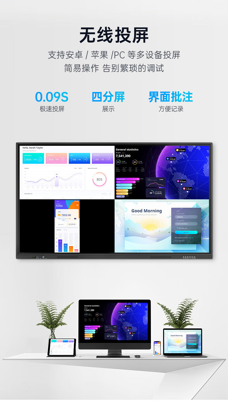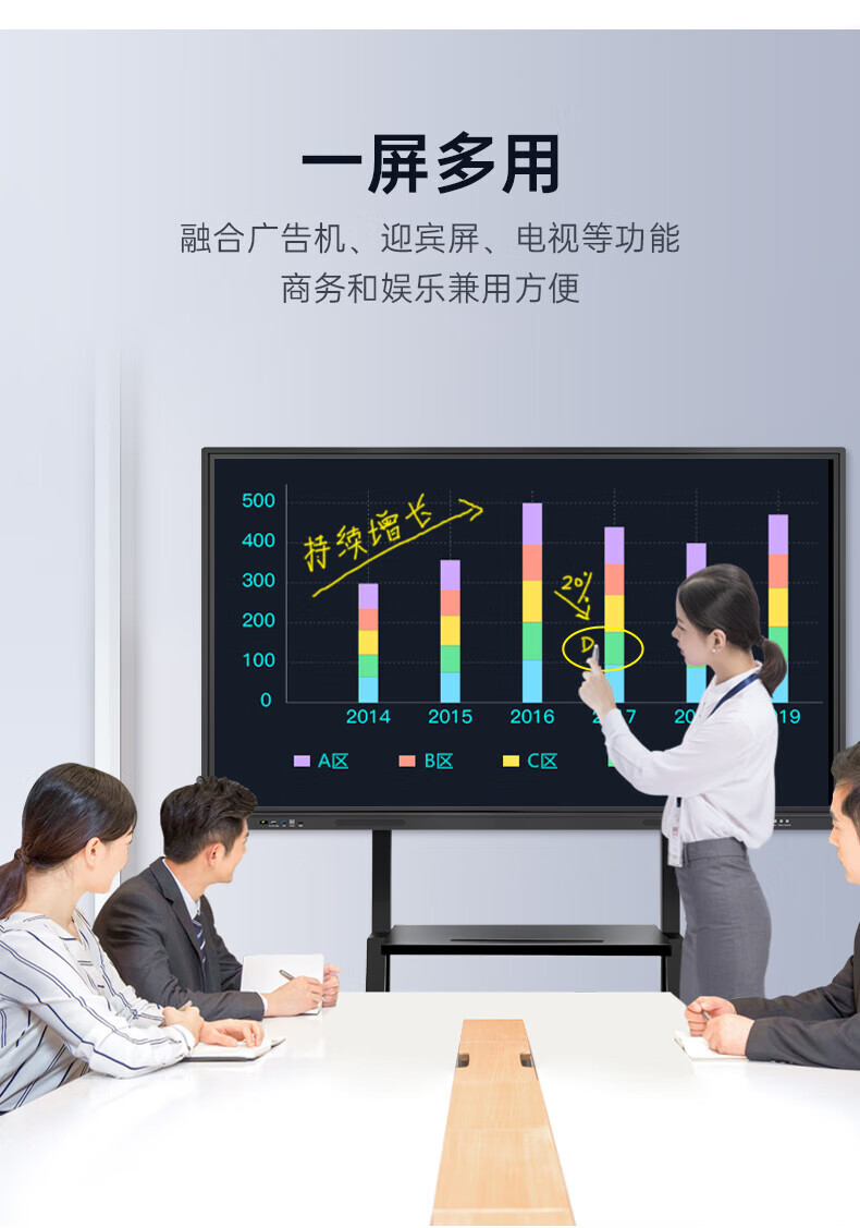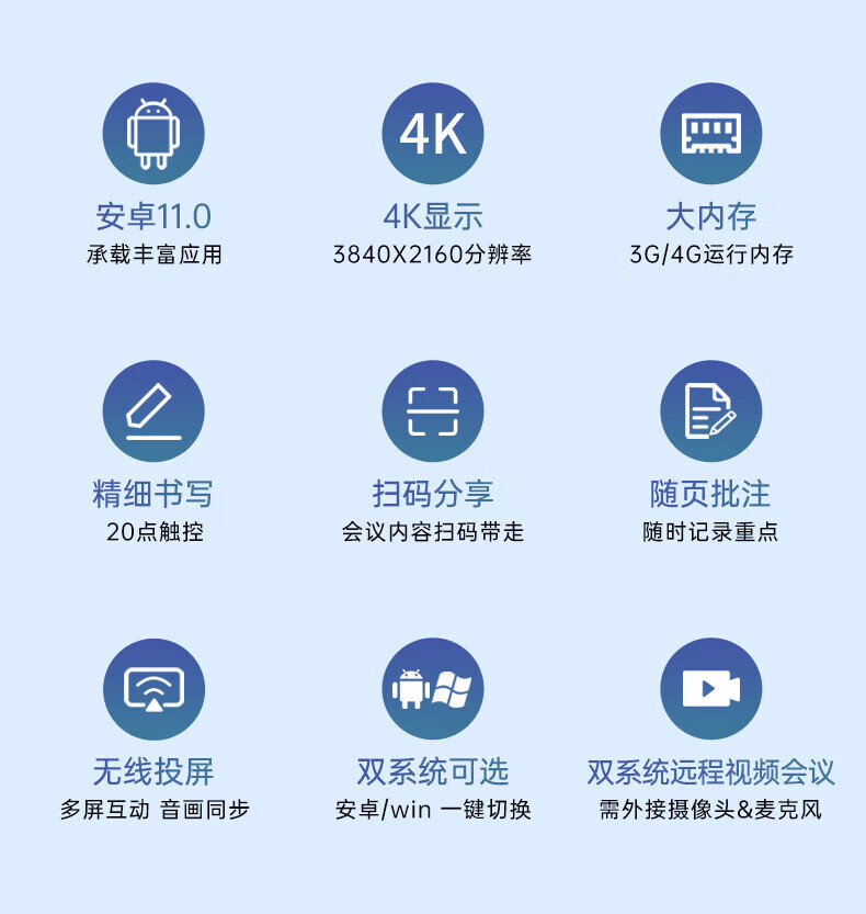 智能会议平板一体机多媒体教学电子白板多功能电视触摸屏显示器 WIN10系统I7/8+256 定制配置预付