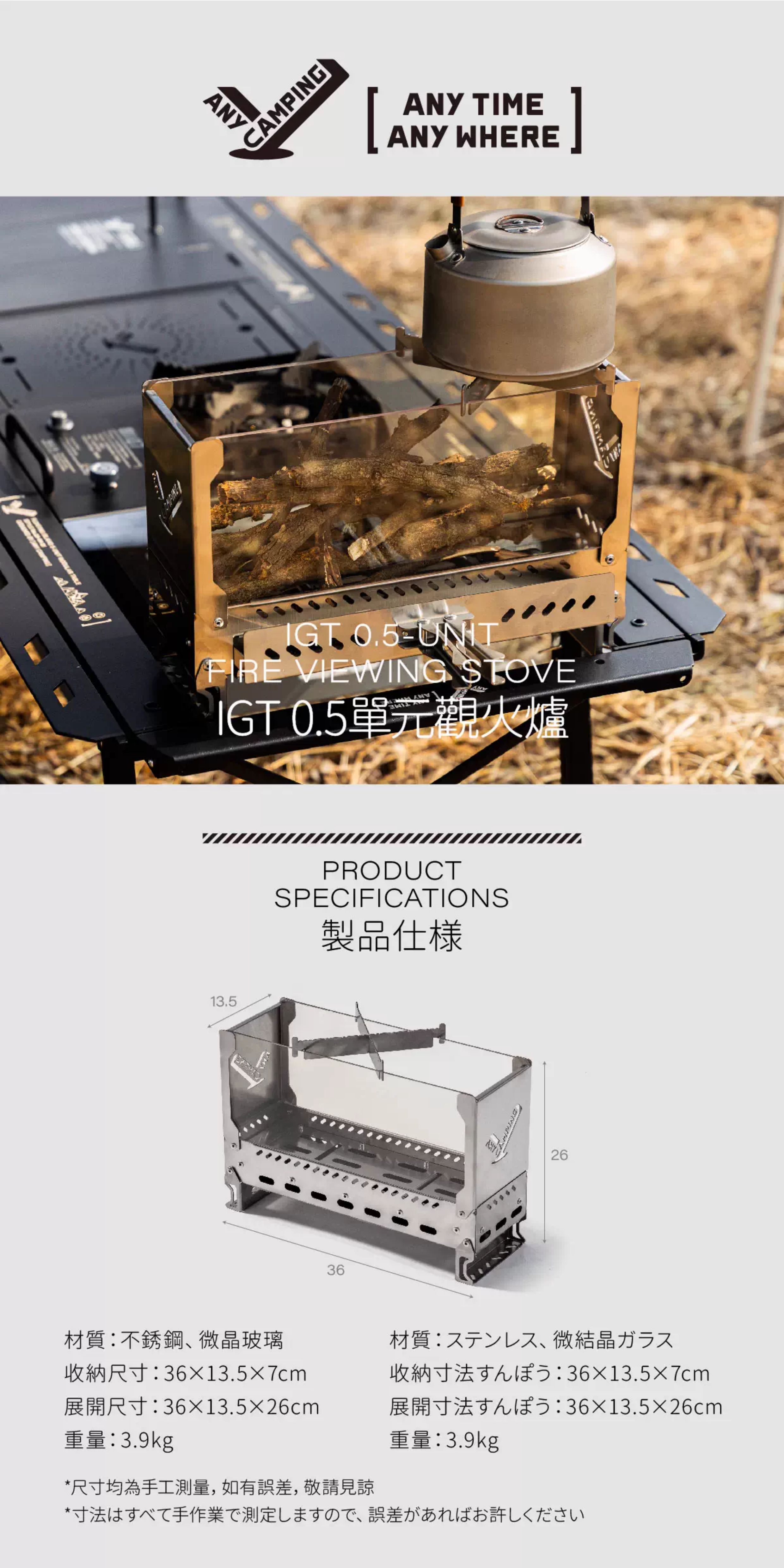 ANY CAMPING无界露营 IGT桌0.5单元观火炉便携折叠烧水炉露营观火烧烤多用炉 0.5单元观火炉