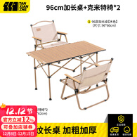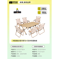 探险者户外桌椅套装一桌四椅折叠桌椅蛋卷桌克米特椅露营装备全套七件套 木色架加大卡其*6+120木色蛋卷桌