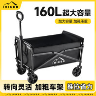 爱山客露营车户外可折叠推车超大营地车野餐车拖车野营手拉杆摆摊小推车 暗夜黑 160L 无刹车 【实心万向轮】