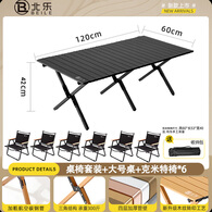 北乐户外便携式露营蛋卷桌可折叠桌椅子野餐摆摊桌椅野营野炊装备套装 黑色大号【120cm】+克米特椅*6