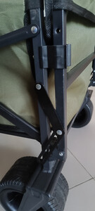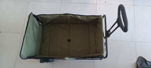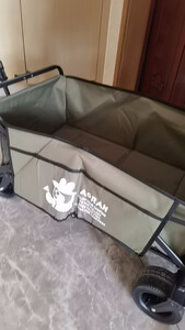 主要展示一下细节。做工不错,前后轮金属轴承,承压能有保障,拉动起来灵活自由起来。用帆布结实料扎实,有一定耐用度。尾部可以打开,增加了使用功能。帆布刚收到货后有些味,放置两天后小了许多。总体来说,性价比很高。