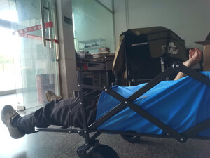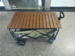 非常好的一款露营车,推起来很便捷,万向轮也很顺滑,承重也很大,两个大人上去都可以,颜值也很高,也很能装,钢架也很结实,一点不单薄,很对得起这个价格,超级推荐