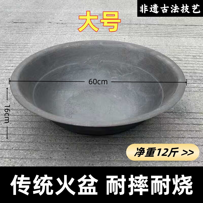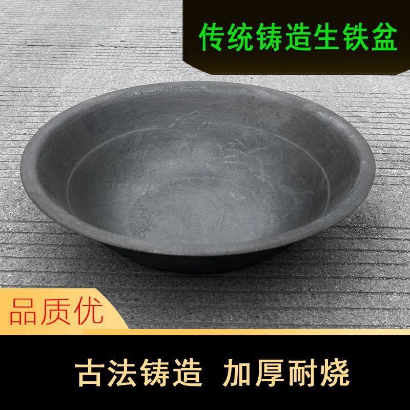 GUBPMTSHIM老式碳火盆生铁铸铁盆烤火盆平底锅养生烫脚盆篝火盆篝火晚会火盆 直径42厘米