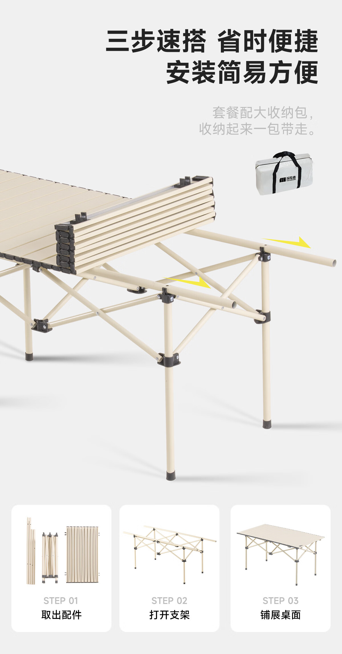 探险者蛋卷桌折叠桌户外桌椅全套便携式野餐桌椅一桌四椅月亮椅露营桌子 【热销款】120款蛋卷桌+豪华月亮椅*4