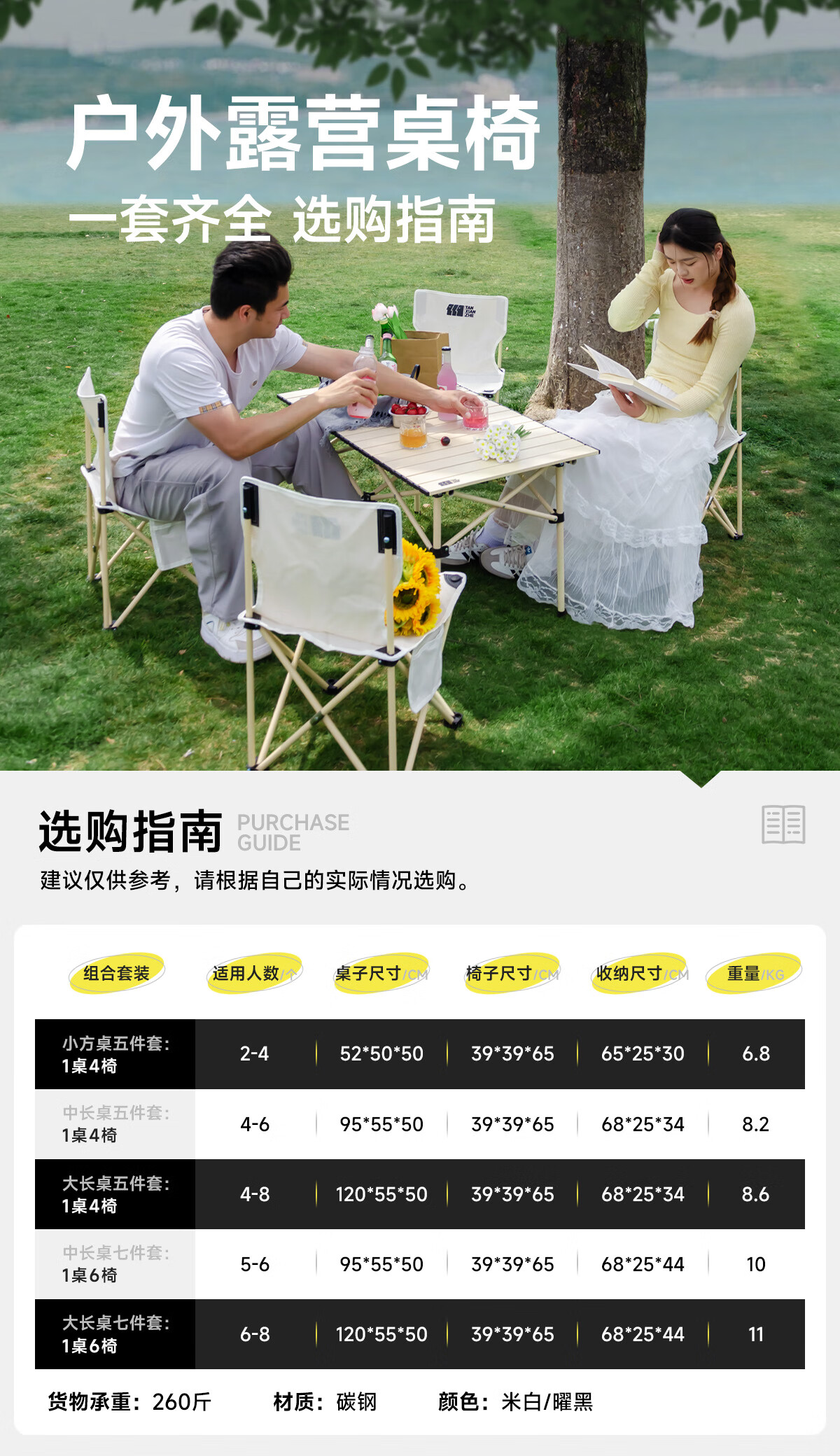 使用体验:我最近购买了一套露营桌椅,整体体验非常满意。桌椅的材质坚固耐用,设计合理,携带方便。在户外使用时,桌椅能够很好地承受重量,且稳定性极佳。同时,折叠后的体积小巧,便于携带和存放。 优点:首先,这款露营桌椅的材质选择非常考究,不仅结实耐用,而且防水防潮性能出色,非常适合户外环境。其次,设计上考虑到了便携性和实用性,折叠后的体积小,重量轻,便于携带。最后,价格相对于其质量和性能来说,性价比非常高。 总体评价:总的来说,这款露营桌椅无论是在质量、设计还是性价比上都表现出色。对于喜欢户外活动或露营的朋友来说,这是一款非常值得推荐的产品。