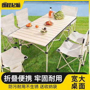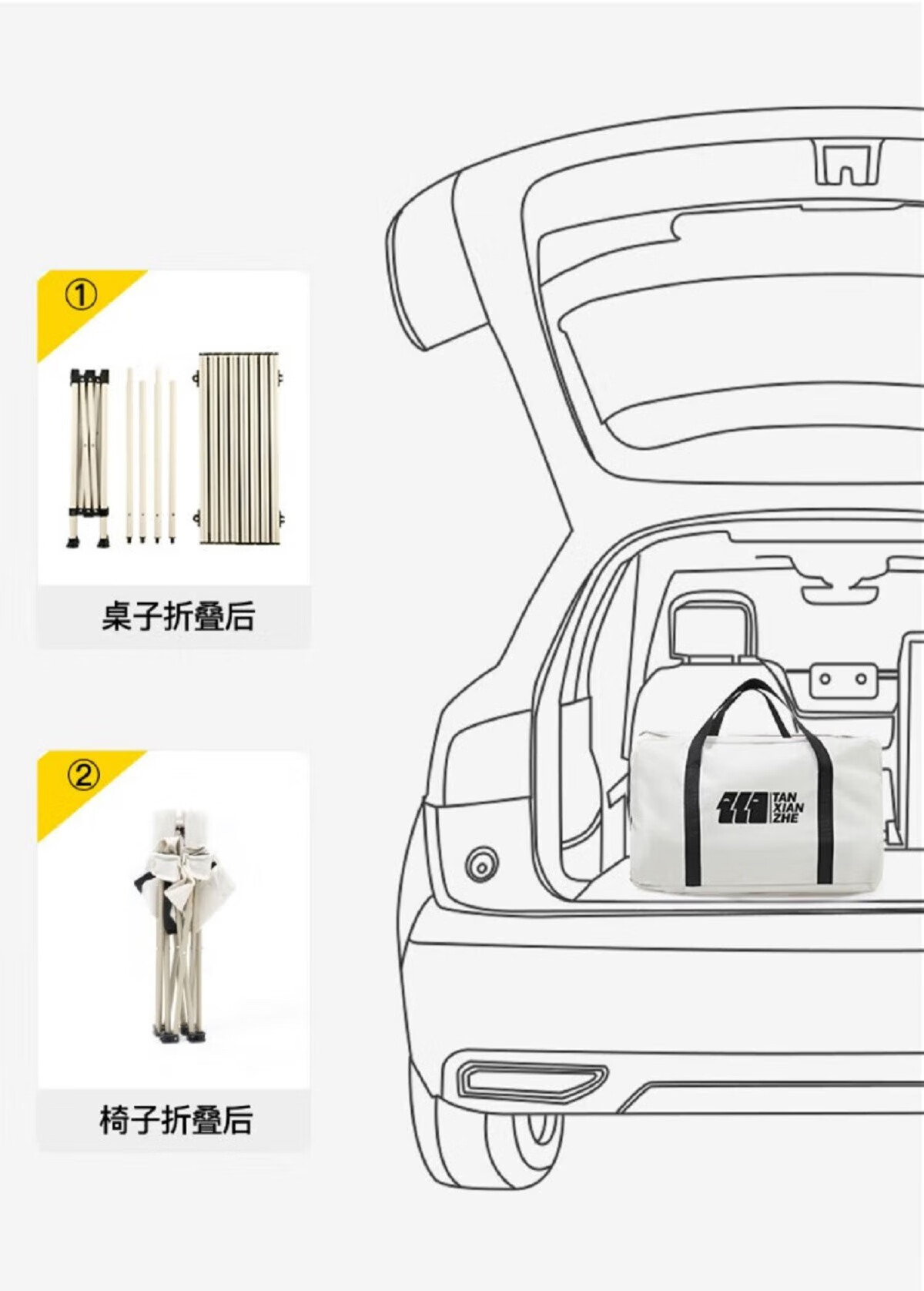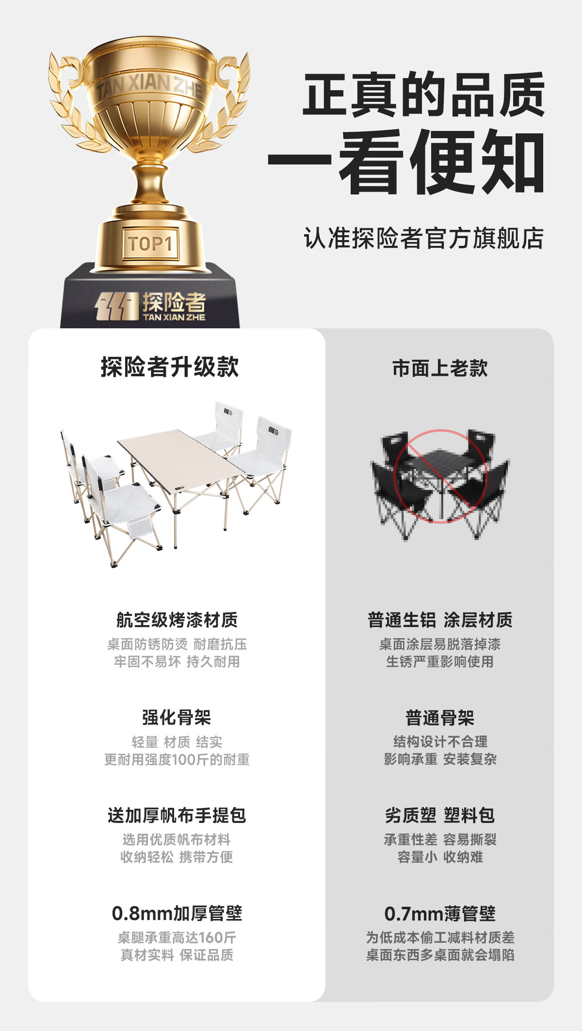 探险者露营折叠桌椅全套装备七件套野餐桌折叠椅便携椅桌椅套装一桌四椅 【120CM】加长米白桌椅七件套