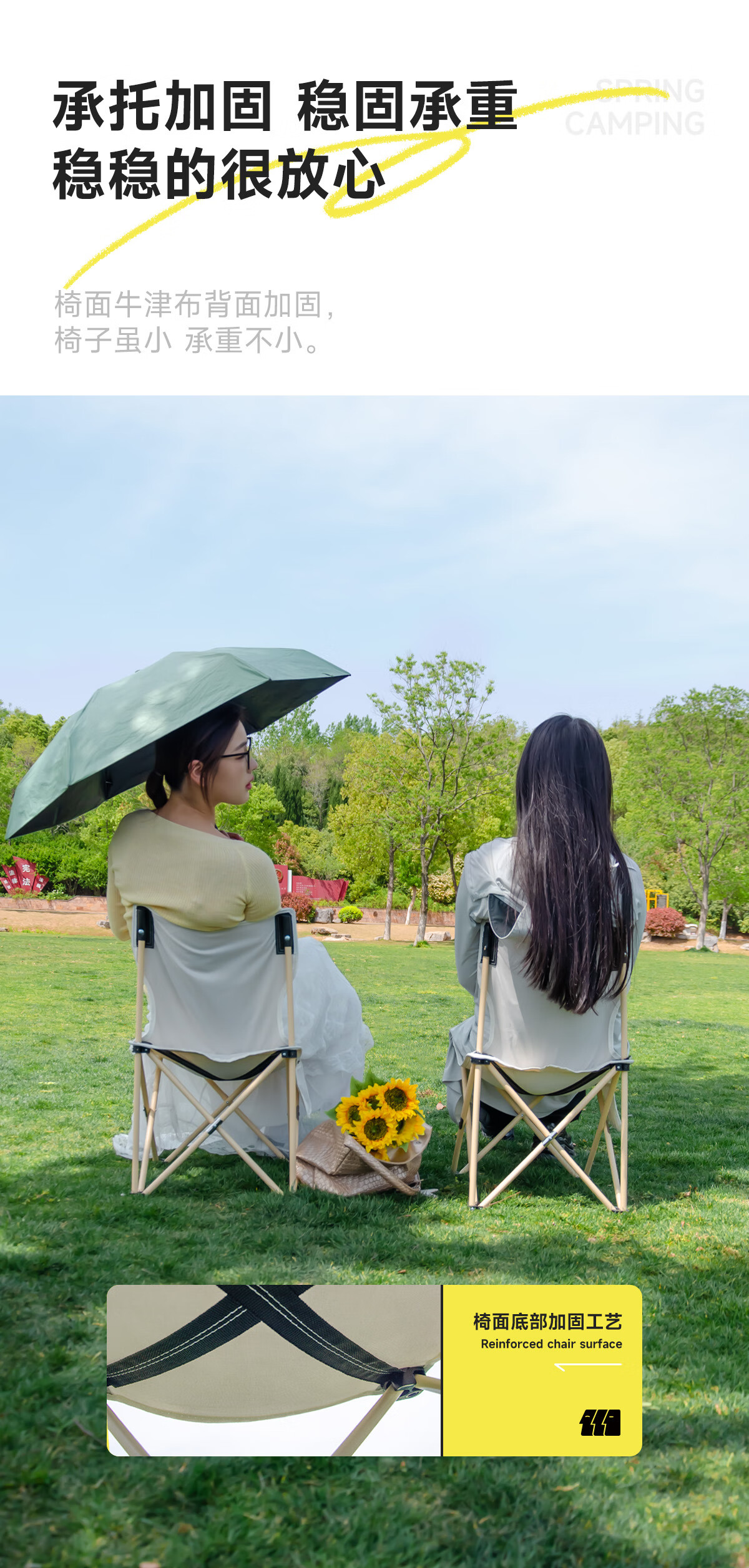 坐着舒服,折叠方便,重量轻,携带不累。卡扣结实坐上去很稳,草地,沙滩都能用,户外露营必备,颜值也高,朋友都问在哪买的