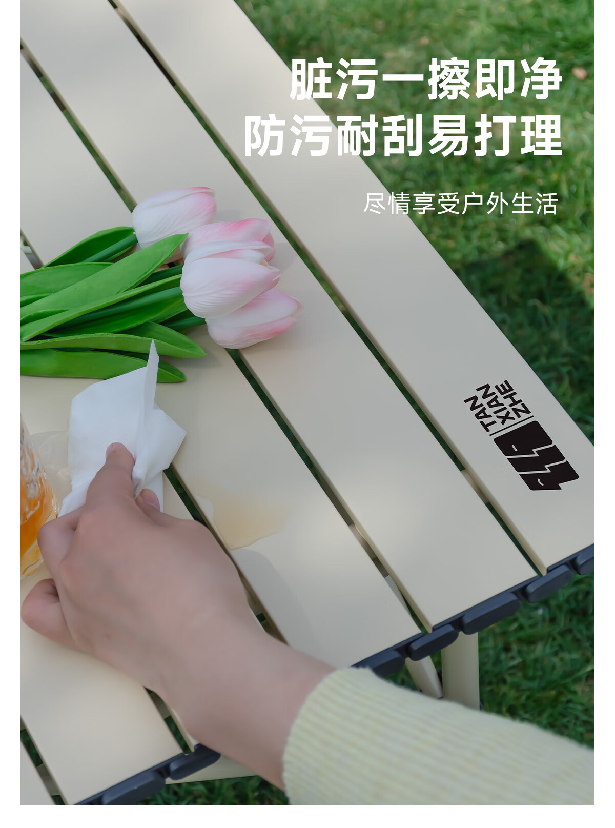探险者户外露营桌椅野餐桌椅一桌四椅户外休闲桌椅折叠桌椅露营桌椅套装 【120CM】4-8人米白桌椅五件套