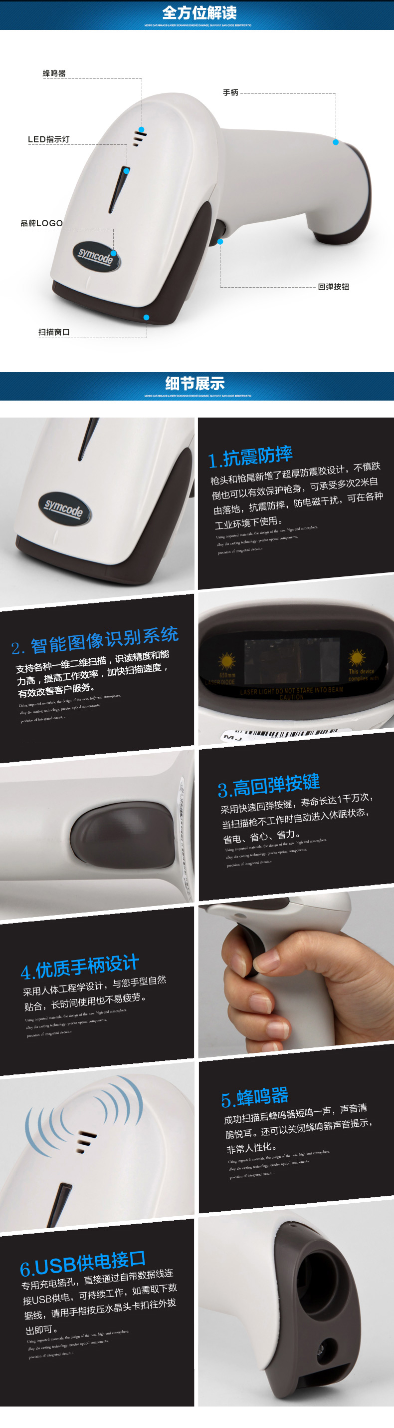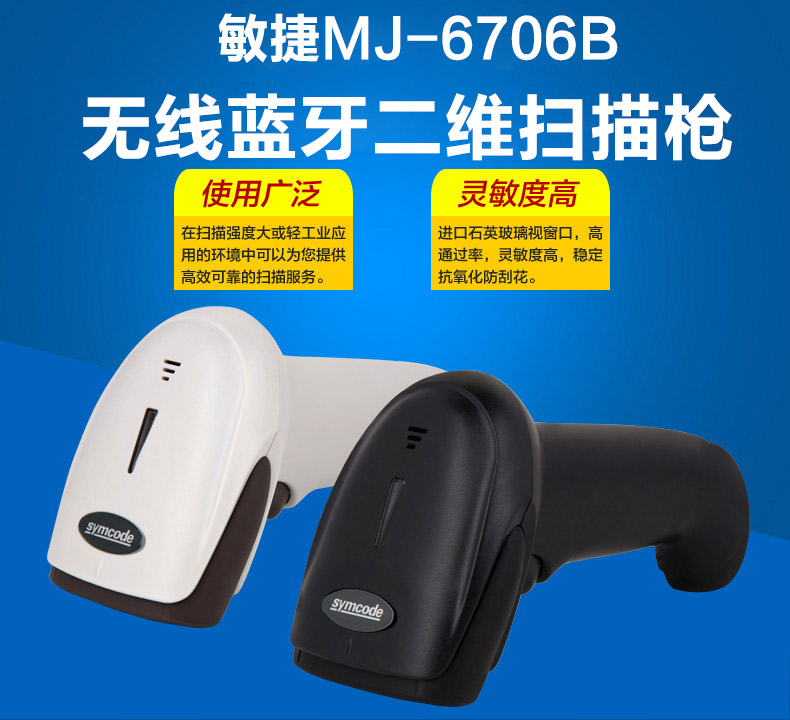 symcode 蓝牙扫码枪快递单扫描器超市收银条码扫码枪移动支付微信收款 商超快递扫码枪 【蓝牙二维】屏幕码+商品码黑