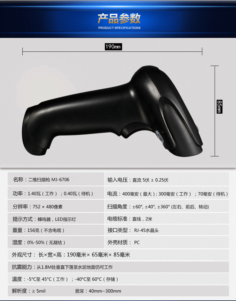 民德(MINDEO) MP8600二维码扫描平台支持一维二维支付码超市药店入库多码扫描器 MP8600I+USB不带底座(多码扫描不重码)