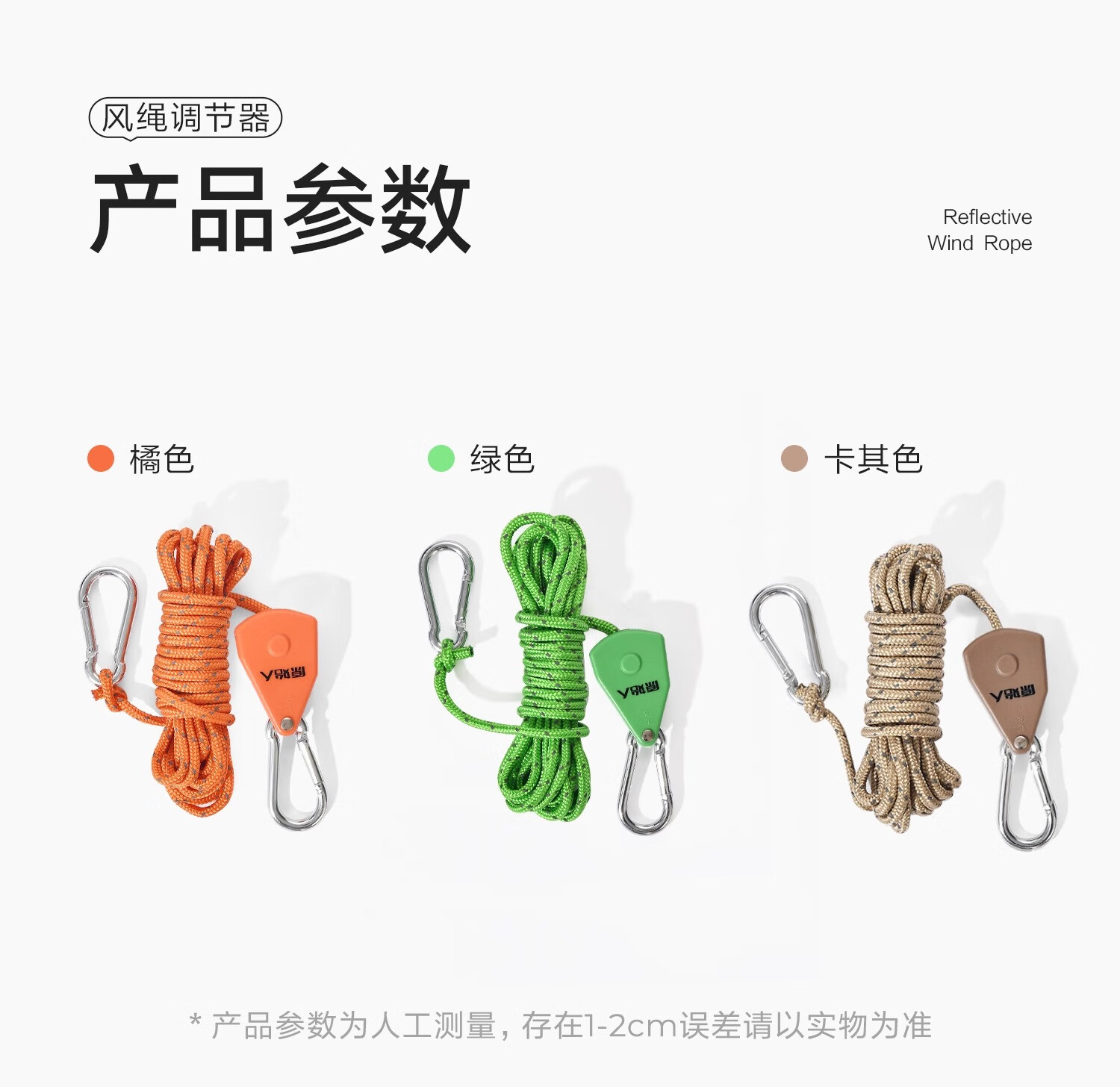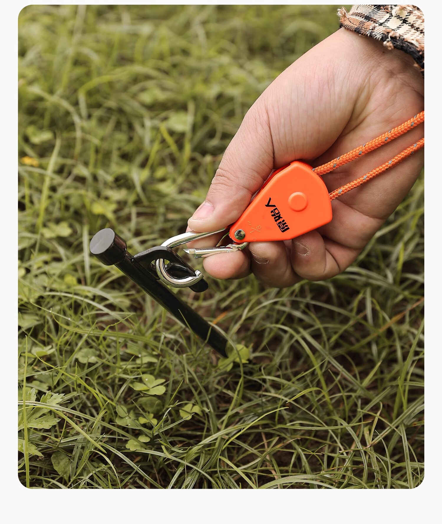 原始人户外野营调节拉绳天幕帐篷配件反光风绳调节拉紧器滑轮加粗防风绳 四只装-橘色滑轮款【直径4mm】