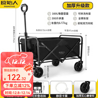 原始人(The Primitive)露营推车营地拖车户外折叠超大野营手拉车遛娃小推车野餐车桌板 160L 升级款曜黑【静音万向轮】