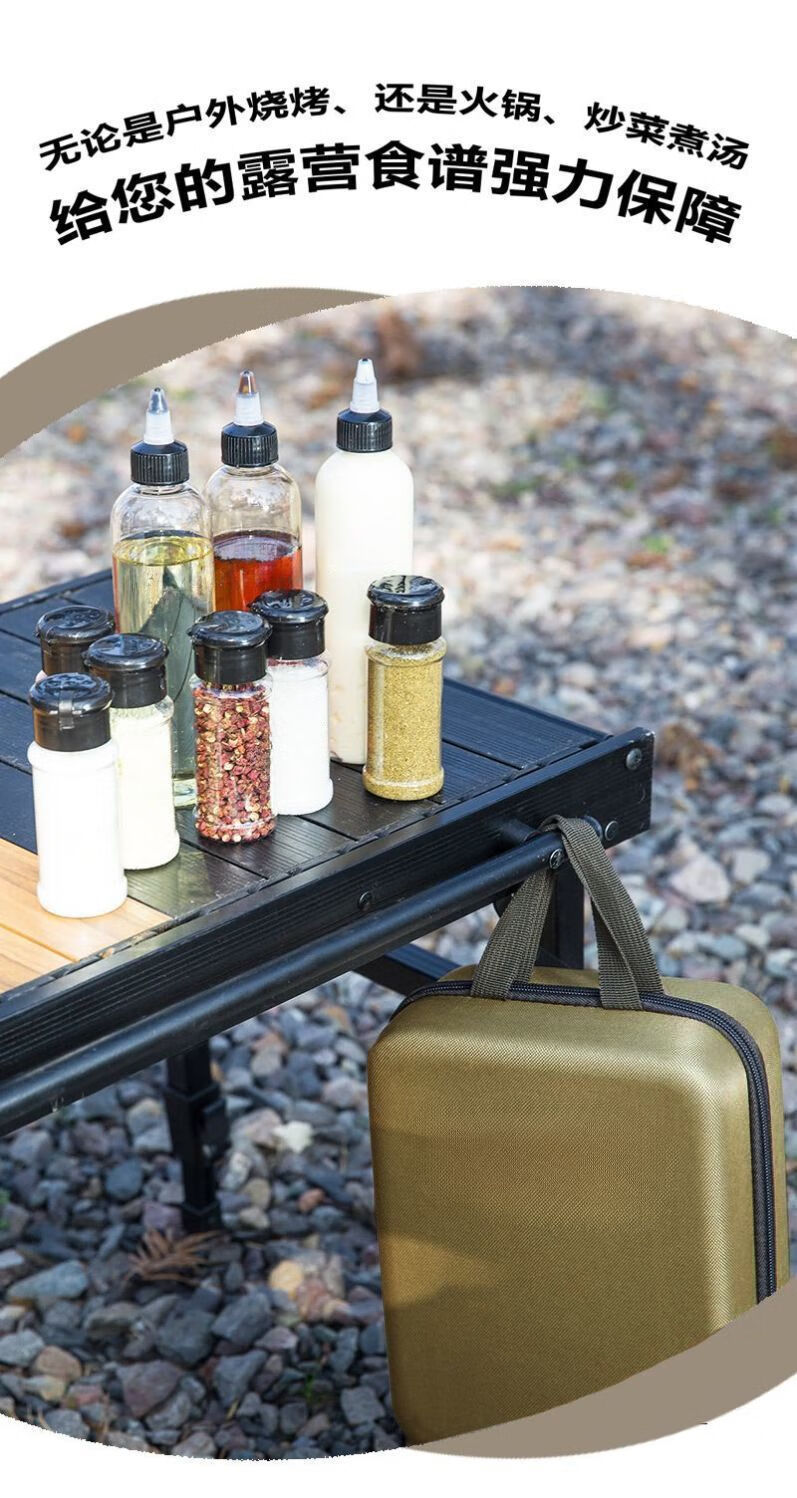 套装组合全面,涵盖了烹饪所需的所有调料瓶类型,相当于一个‘’户外迷你调料库‘’有它在,户外做饭烧烤,火锅不愁没合适的调料容器了
