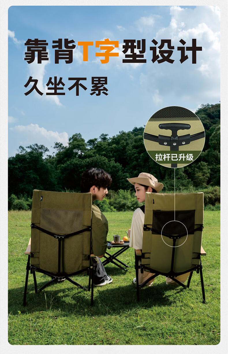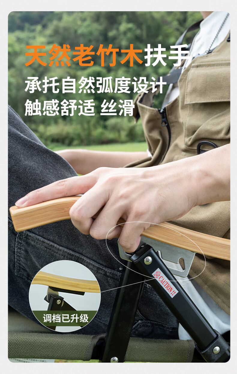 山扉户外露营折叠椅 可调节加厚仿帆布野外营地海狗椅 钛灰氧化咖啡色
