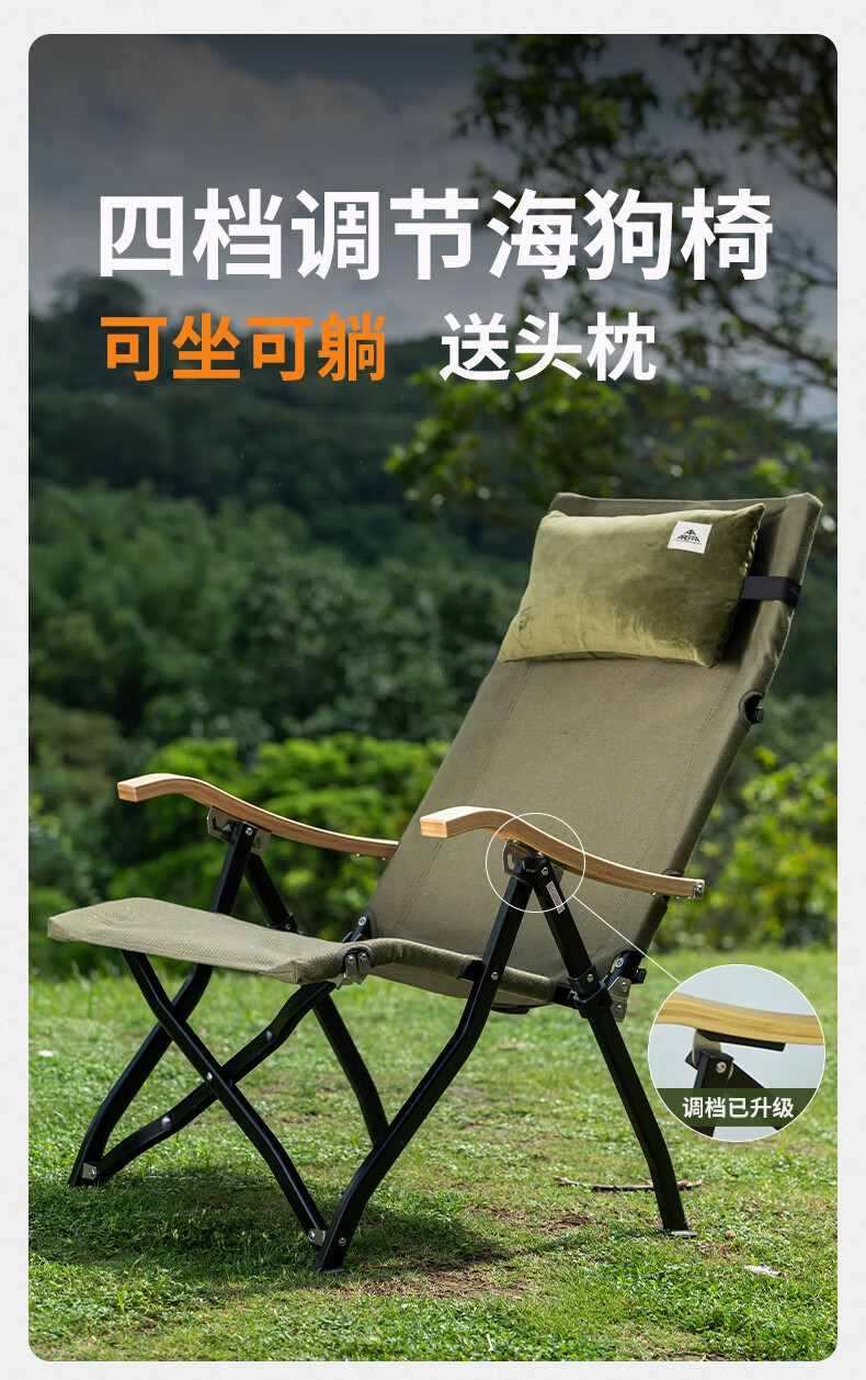 AREFFA户外折叠椅子便携式铝合金露营午休椅野餐躺椅矮脚调档高背海狗椅 【灰色】四档矮脚海狗椅【送头枕+终身质保】