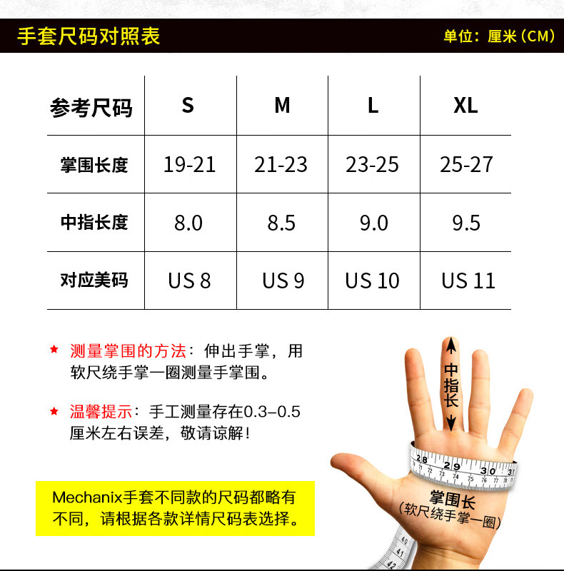 超级技师双11优惠购买,手套尺码跟对照表买,就是手套的大拇指跟小姆指尺寸偏长一些,其它三个手指长度都正好,可能是自己手指长短了些,手套轻便,透气好
