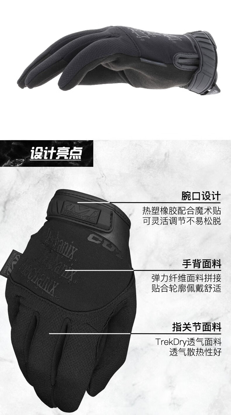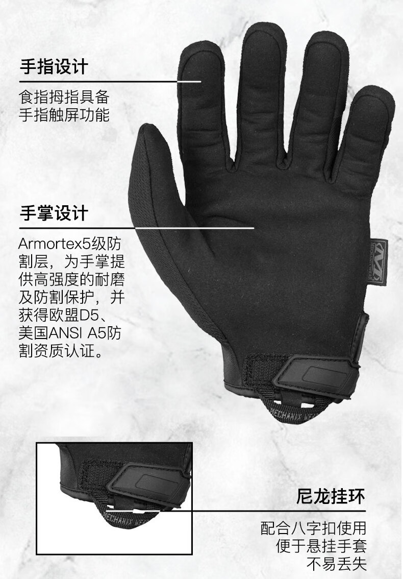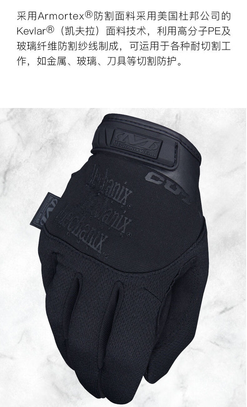 MECHANIX WEAR 超级技师Pursuit D5追击者五级防割耐磨防护户外骑行触屏手套 战术黑(可触屏) S