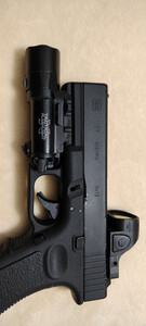 对得起价格,单纯摆个造型不求还原质感是够用的,尼龙手电里算做的不错的。但是号称300流明的亮度和金属的500流明没法比,如果不差那几十块钱,建议直接上金属的,特别对于前轻后重的电手,手电会起到配重的作用,改善手感。不过,和@g17的结合,尼龙款的反而更稳定,金属款的需要自己做点小手工,否则会明显晃动。恰巧两款都有,看官们自行对比吧……