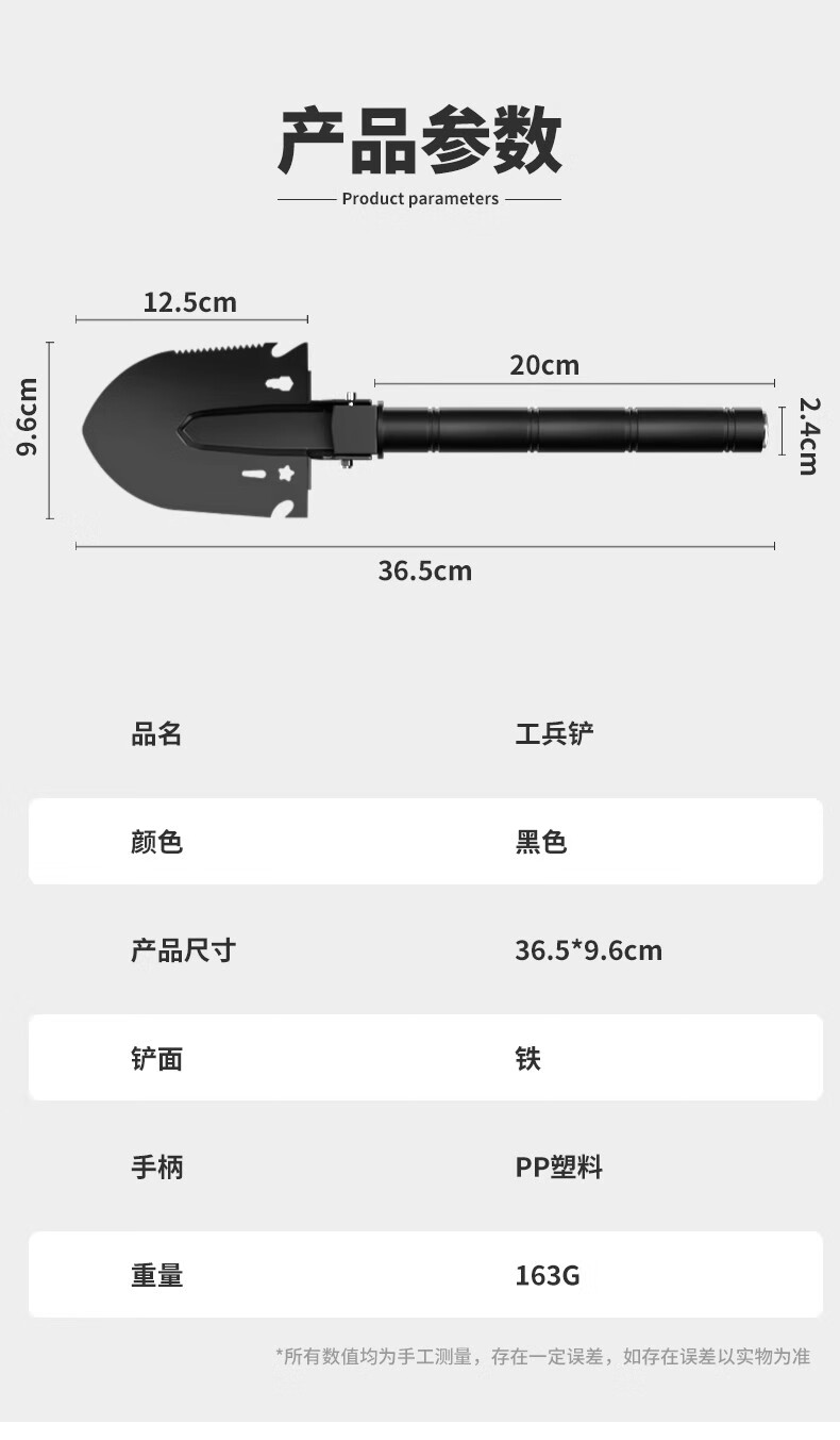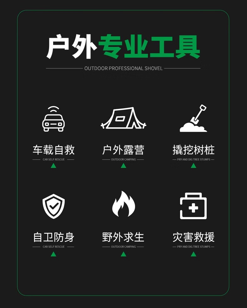 专业级折叠多功能兵工铲碳钢铁锹野外求生战术防身多用途大号铲 标准二节