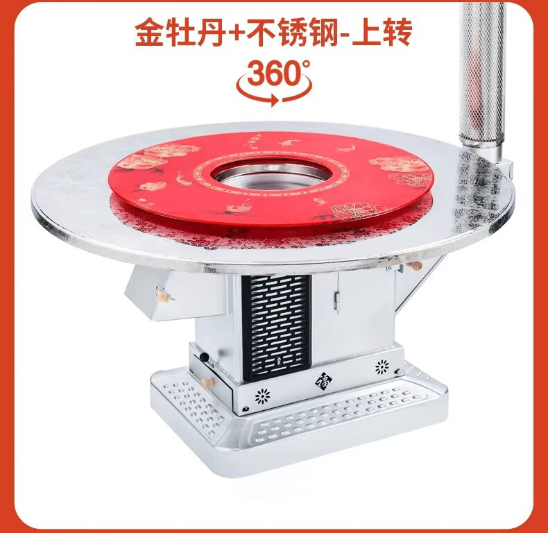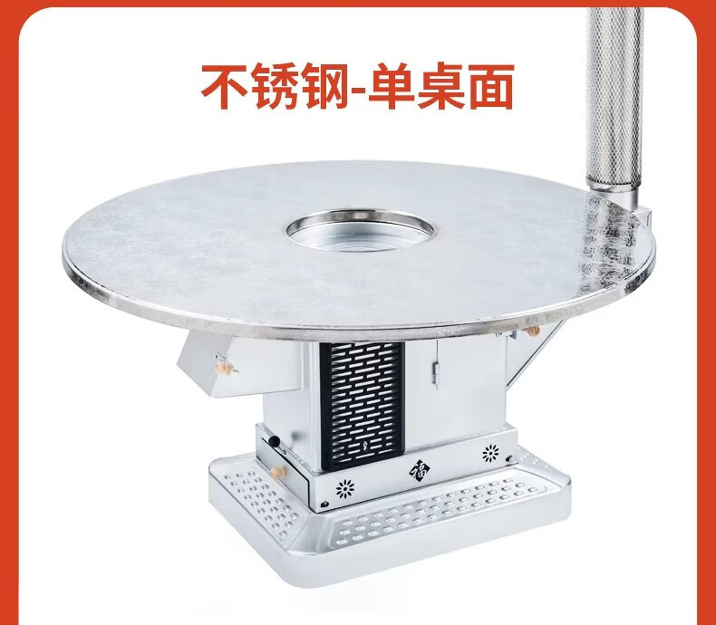 能师傅【送货上门】气化炉家用室内烤火炉柴煤两用节能无烟柴火炉灶农村 0.8米不锈钢桌面【 2-3人 气化炉】