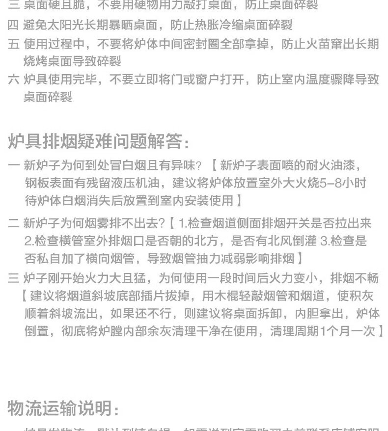 物流很快。火的厚度和广告宣传的一样。物一有所值给五星好评,客服很负责任,打电话询问我的意见,火炉不跑烟,确实不错。