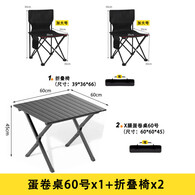 督昂户外露营蛋卷桌椅子折叠便携式一桌四椅六椅野餐组合全套装备套装 X腿蛋卷桌60号(黑)*1 折叠椅黑色(加大)*2