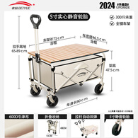 北岳露营推车可折叠户外手推野餐车营地拖车拉杆小拉车桌板烧烤野营车 桌板套餐-便携款云瑾白+木纹桌板