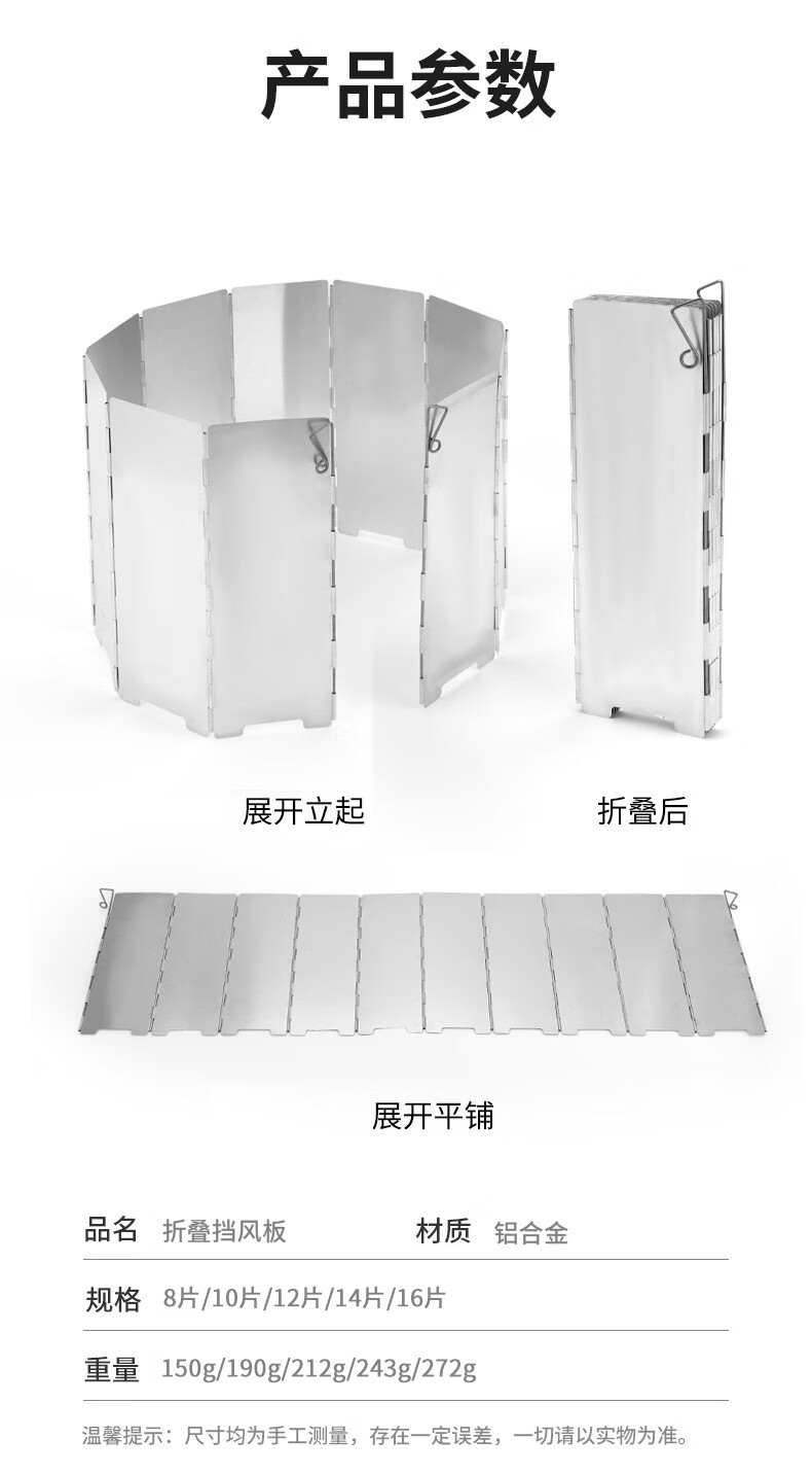 户外铝合金挡风板轻量化加长野外炉具防风板烤炉野营装备10片 铝合金挡风板