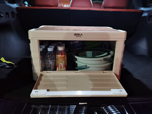 价格实惠,容量很大,不用时可以折叠起来,日常在家使用或者外出露营都很合适,大小也比较适中,适合放在车里或者后备箱,盖板是以木质跟塑料的拼接,日常户外切个水果什么的都挺合适的。