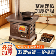 新型柴火炉农村家用烧木柴无烟室内烤火炉取暖炉具移动大锅灶台 小号泰钢+水箱3米烟管配件