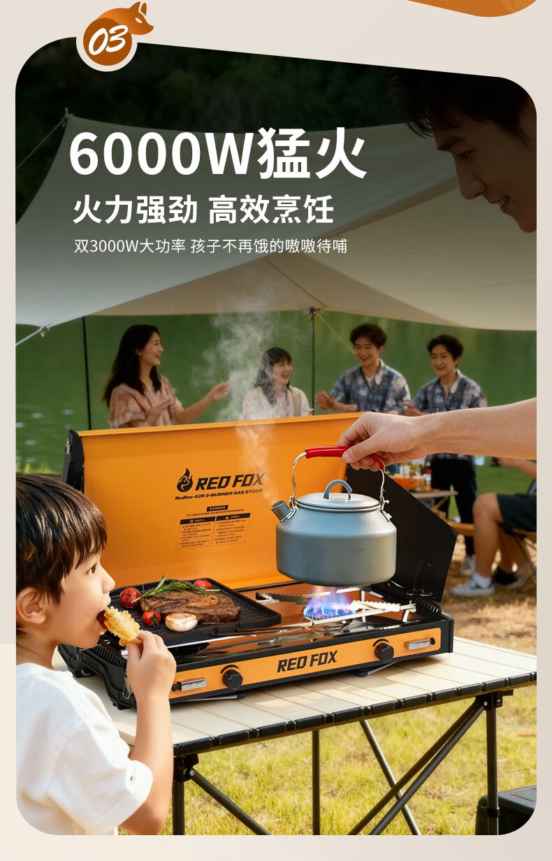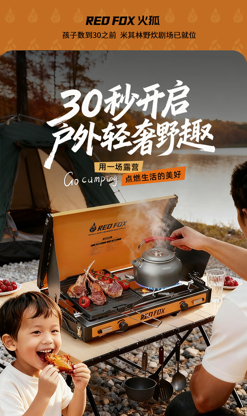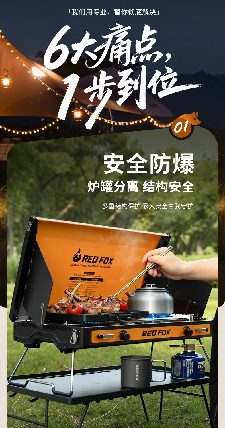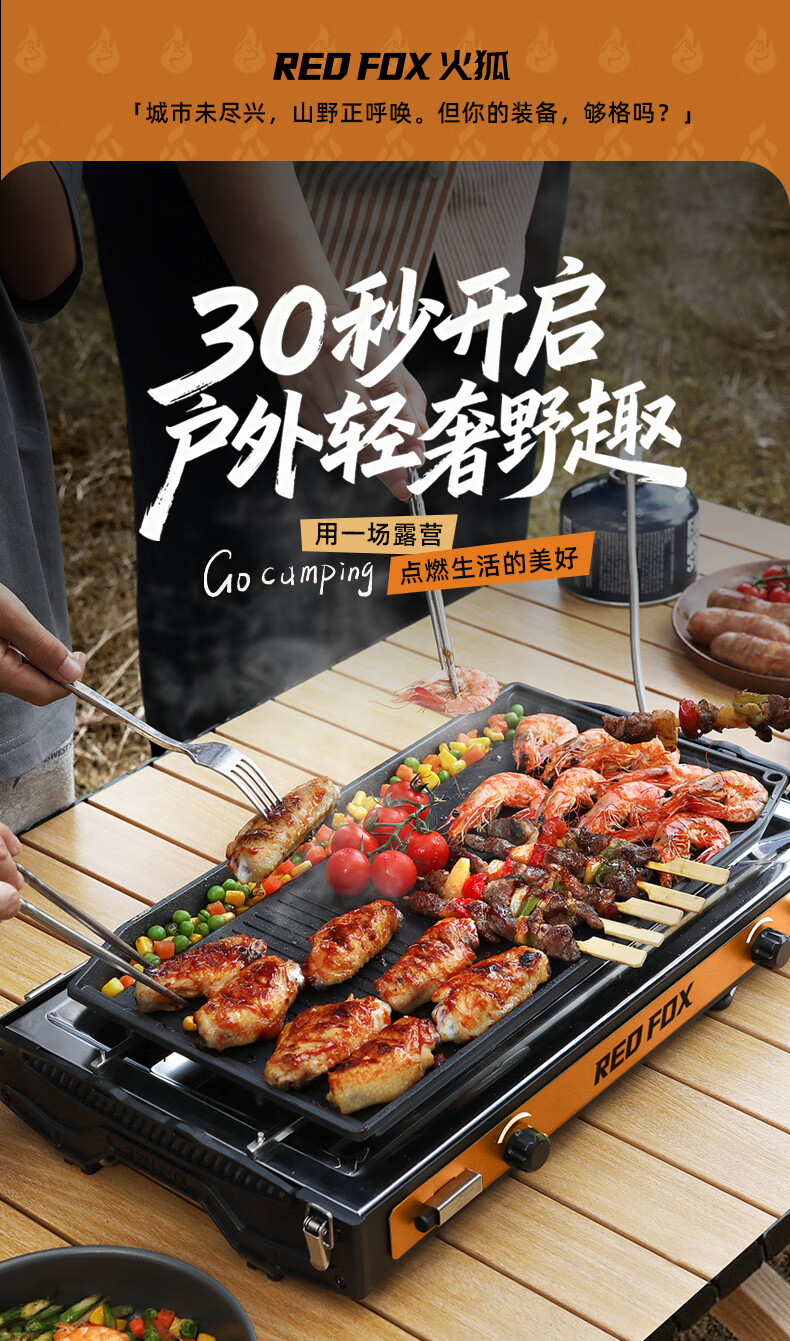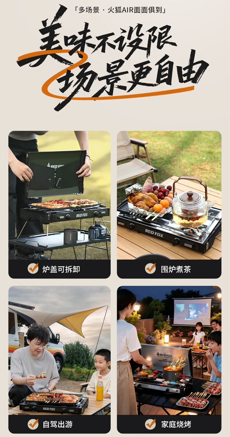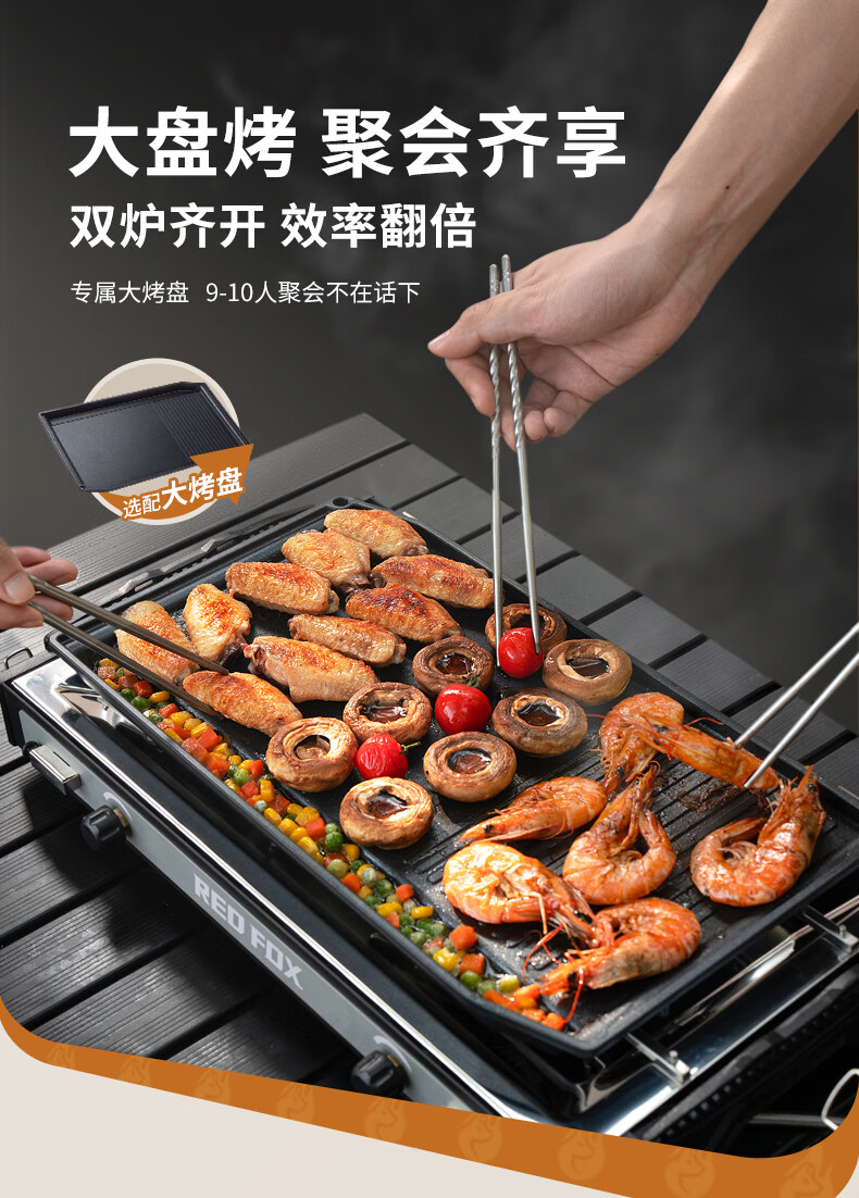 烧烤世家火狐便携户外炉具装备全套露营燃气烧烤炉分体式卡式炉 【7-12人】火狐AIR橙+大烤盘+包