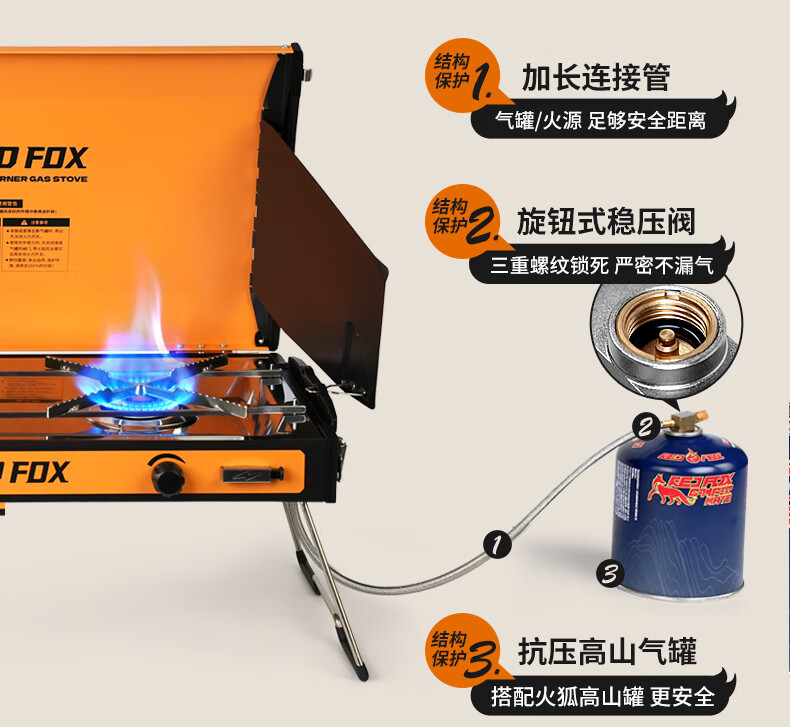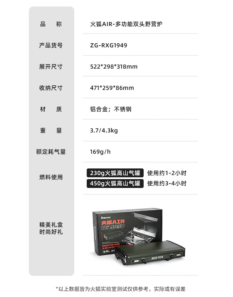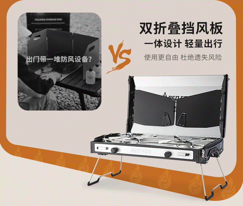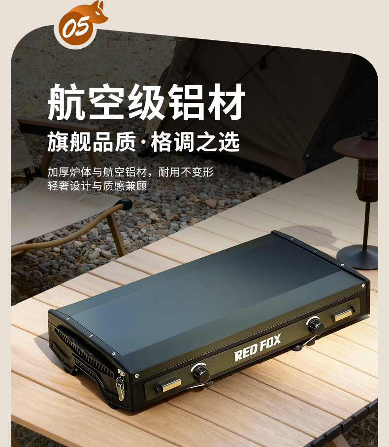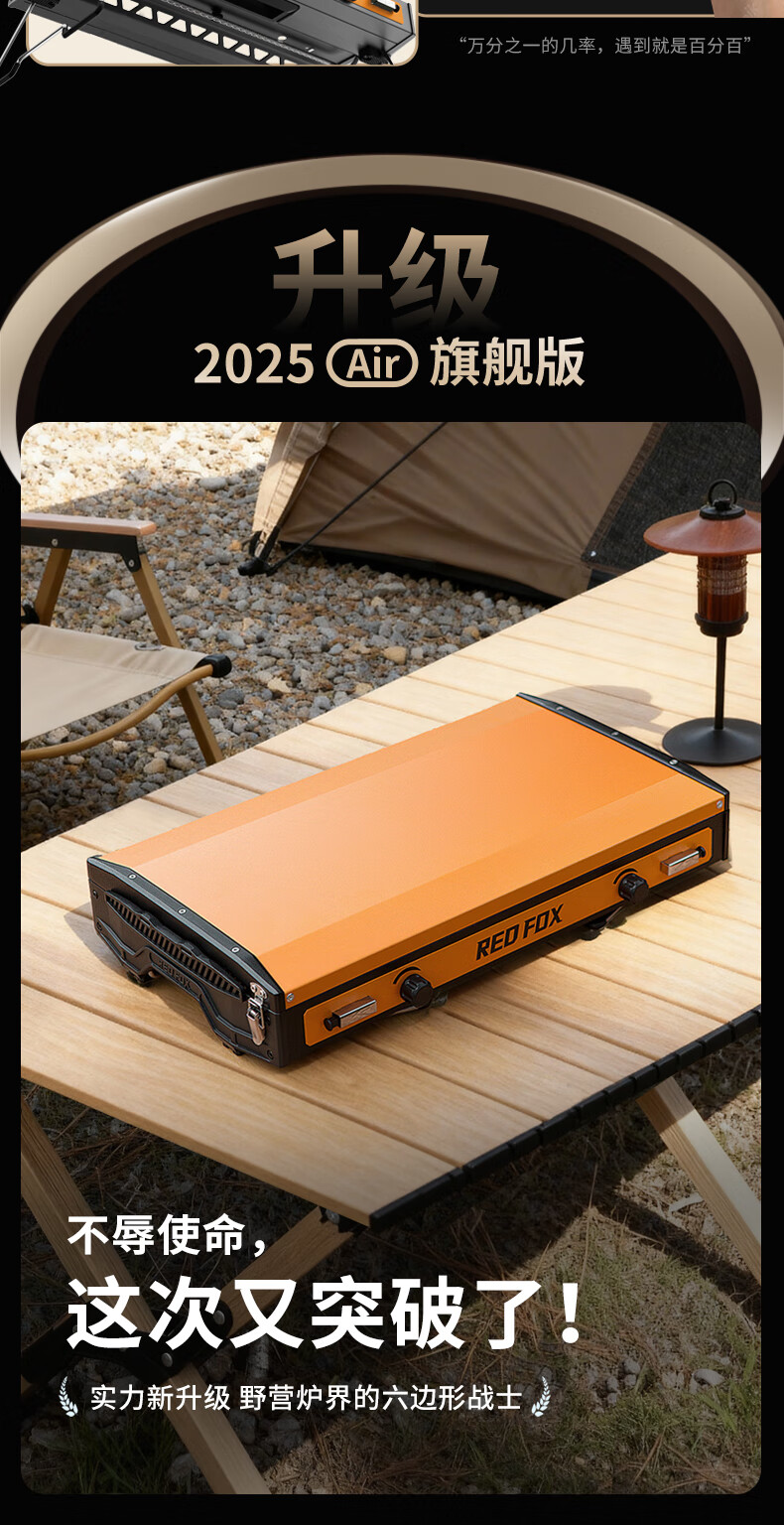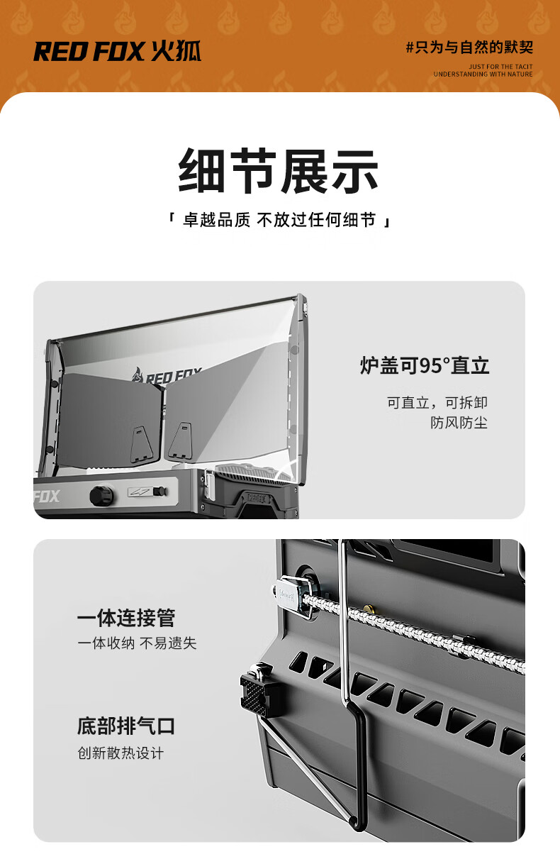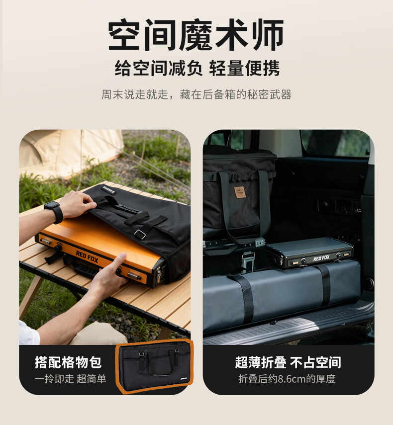 烧烤世家火狐便携户外炉具装备全套露营燃气烧烤炉分体式卡式炉 【7-12人】火狐AIR橙+大烤盘+包