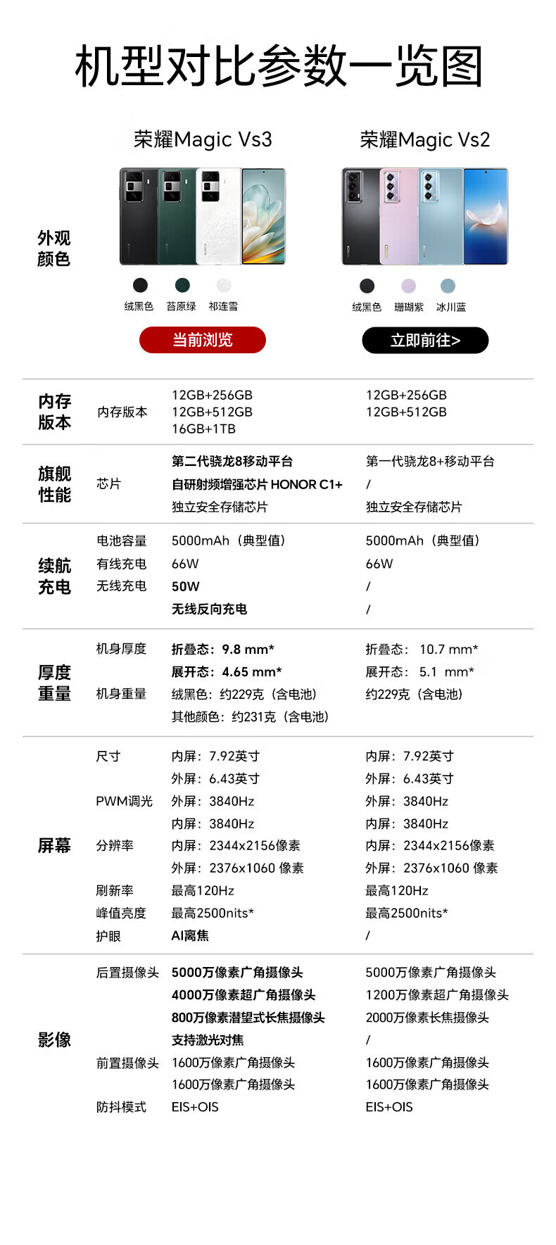 AI大模型,折叠屏,轻薄,LTPO屏幕,高频PWM调光,全焦段影像,潜望式长焦,无线充电,NFC,红外遥控,大底主摄