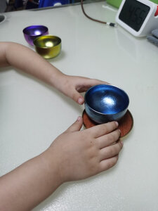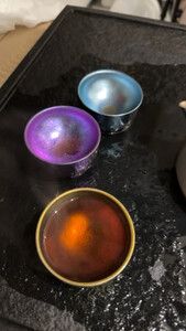 京东物流给力。杯子质量不错,做工精细,很漂亮,50ml的容量刚刚好,颜色很艳丽,四色各有特点。金属钛的,不怕摔,适合和孩子一起喝茶用。