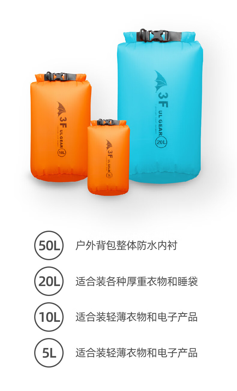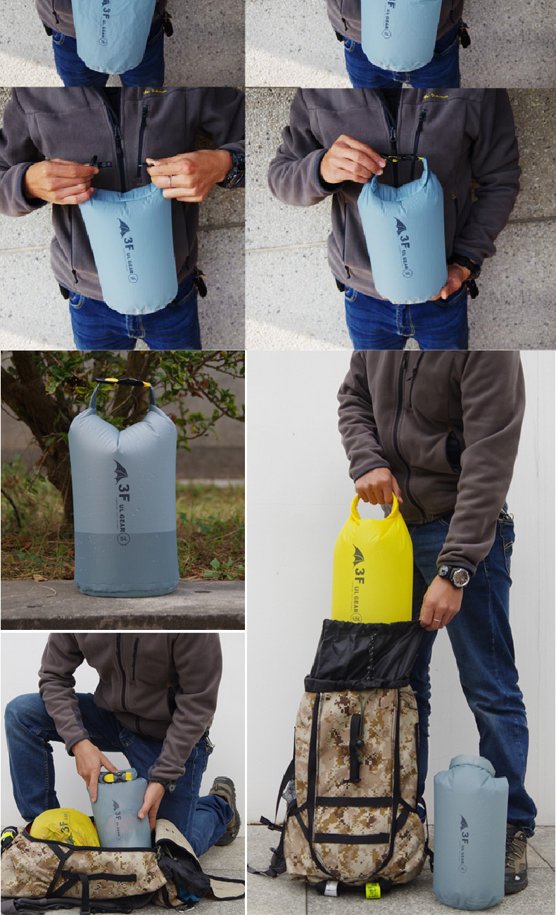 一直使用三峰出的防水袋 前几年买的防水袋压胶老化了 这次买排气的袋子 可以压缩到最小化 节省登山包空间