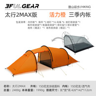 三峰出三峰出太行2MAX双人帐篷户外超轻隧道帐徒步登山骑行露营专业装备 太行2 MAX 三季活力橙