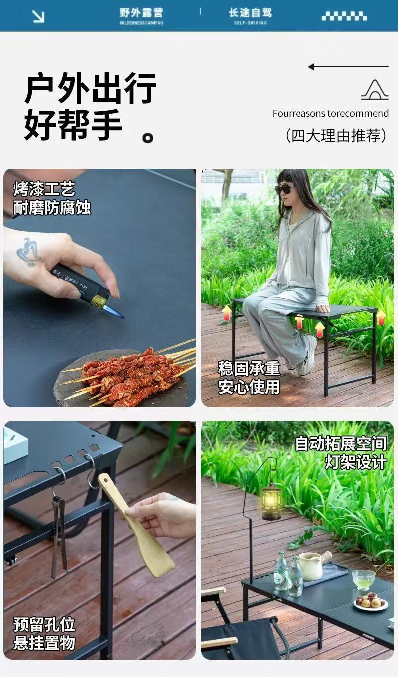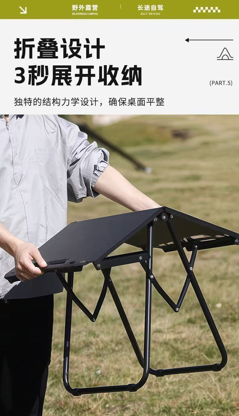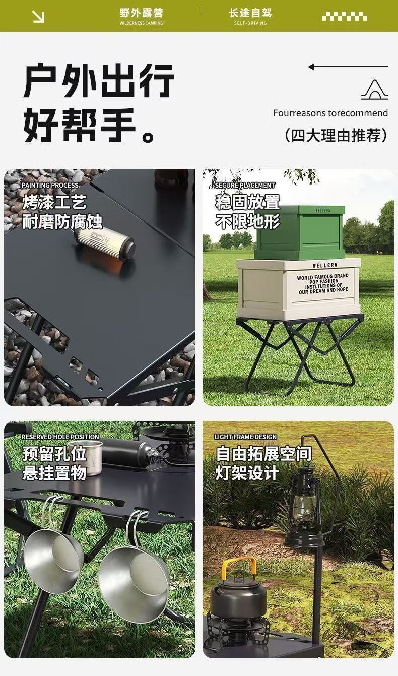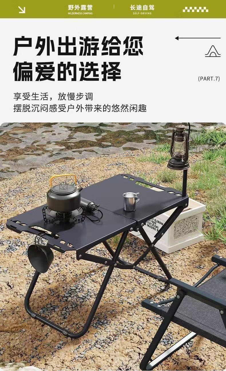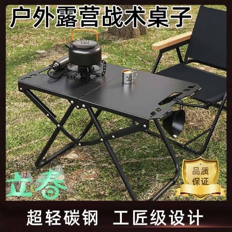 筏芯户外折叠桌子碳钢露营轻量化战术桌椅便捷茶桌桌式 单灯架配件【无IGT桌】 收放自如【户外折叠桌-加厚碳钢材质】
