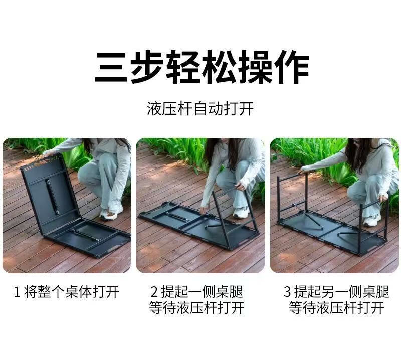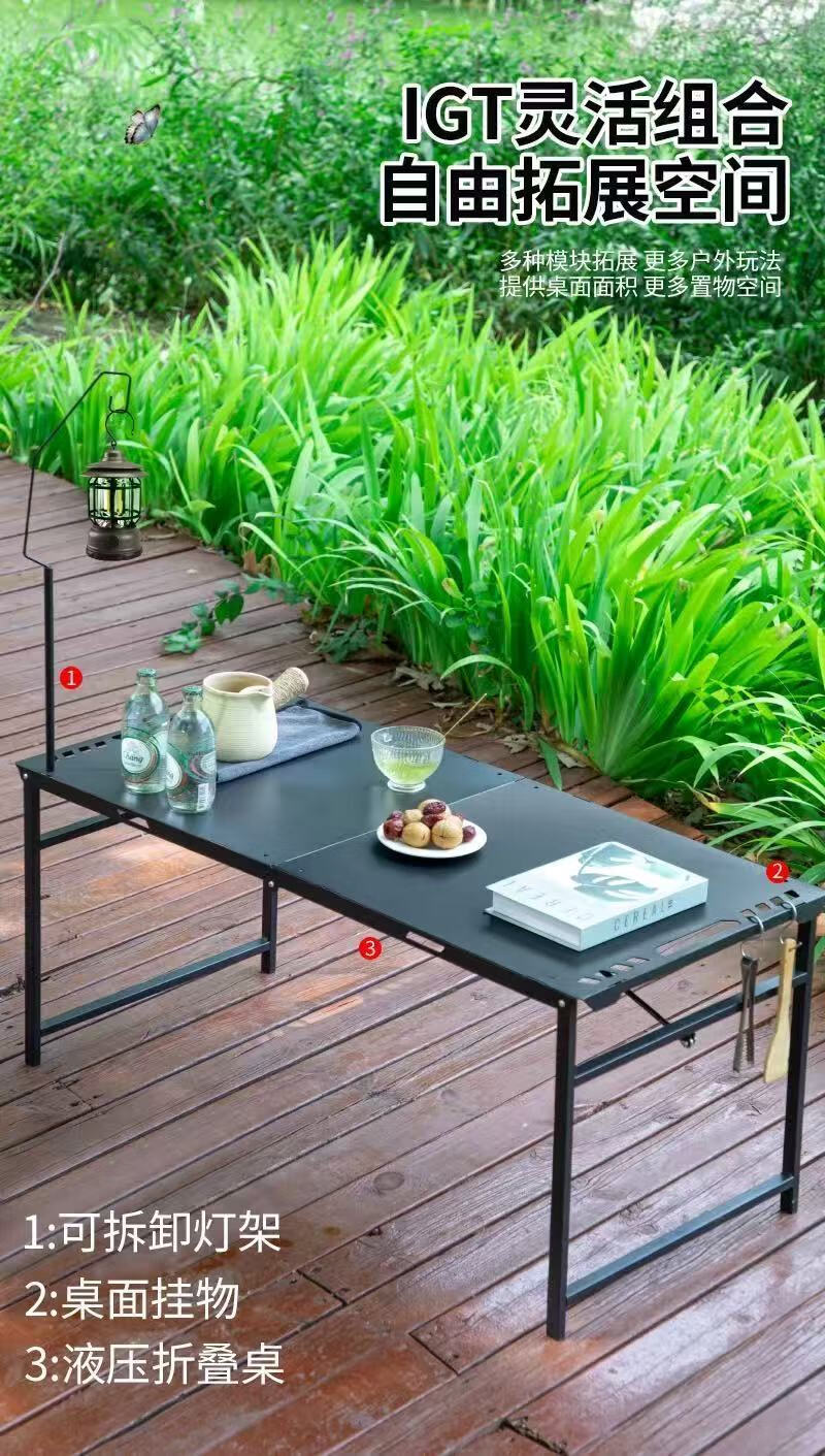 新品露营置物折叠桌IGT公园桌多功能战术桌轻量化户外便携野餐桌 104*45*48【大号液压】送加厚手提包+灯架 【出口品质】加厚规格+送收纳包