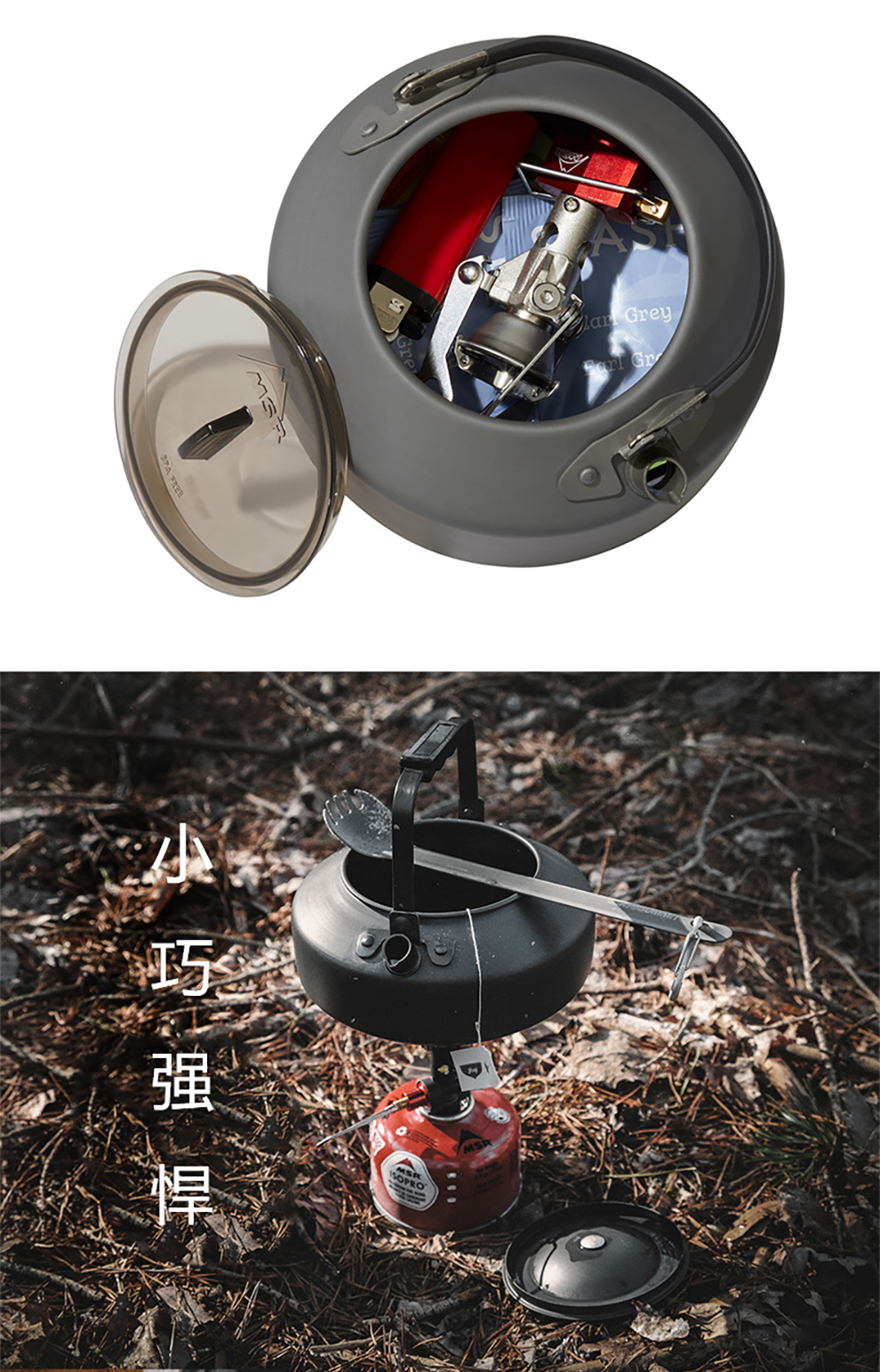 MSR不亏是专业的户外用品,此1 L烧水壶,不论是外观、实用性且重量谨147 g,很适合1-2人野外露营烧水用,再搭配小火箭,自行买煤気罐即可,值得推薦