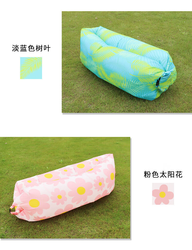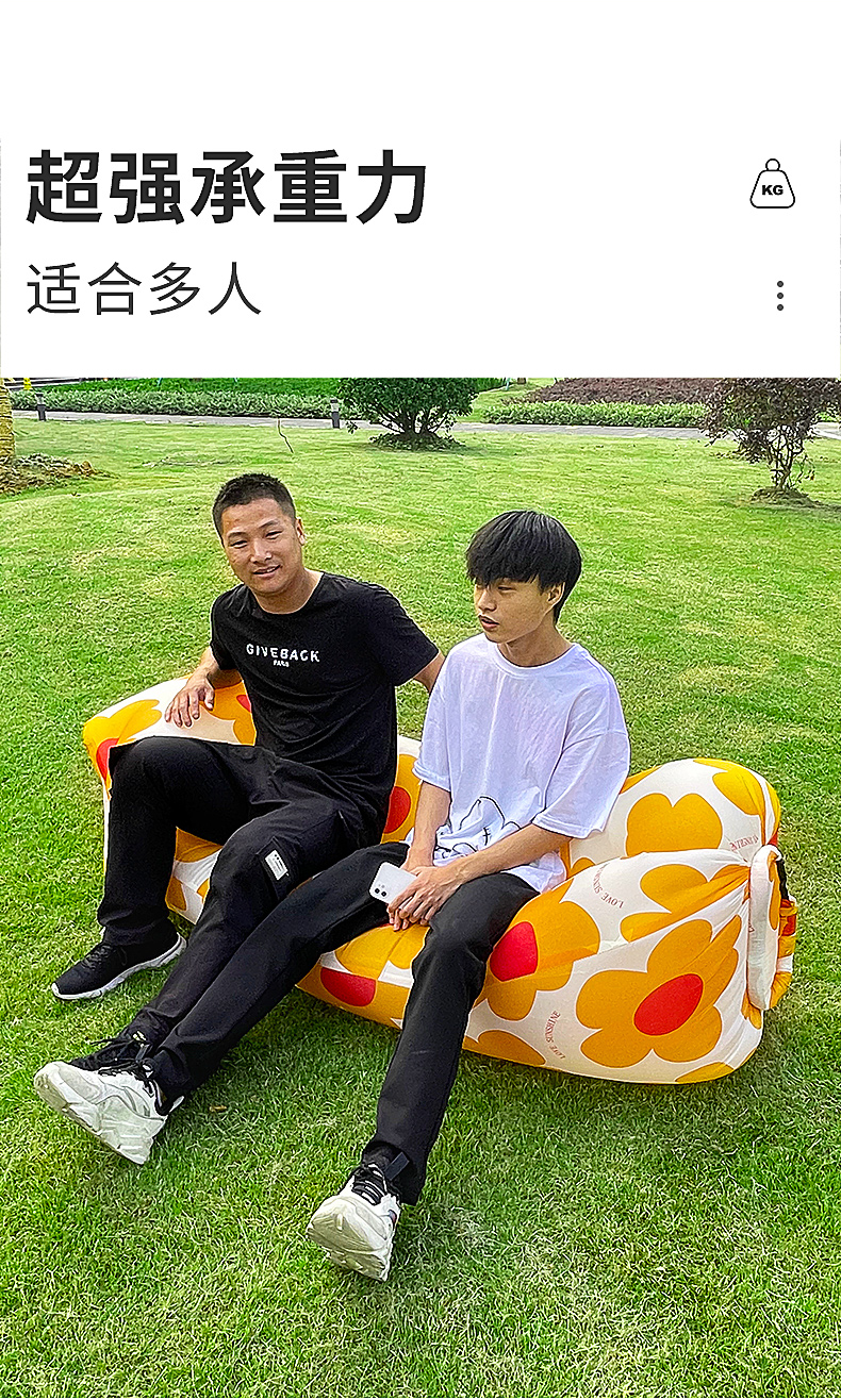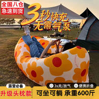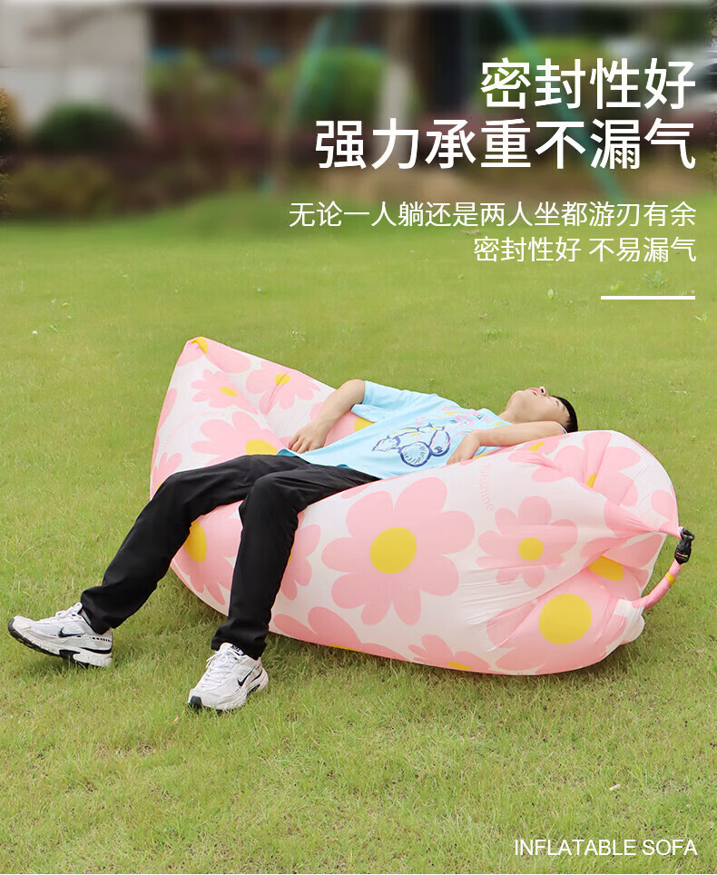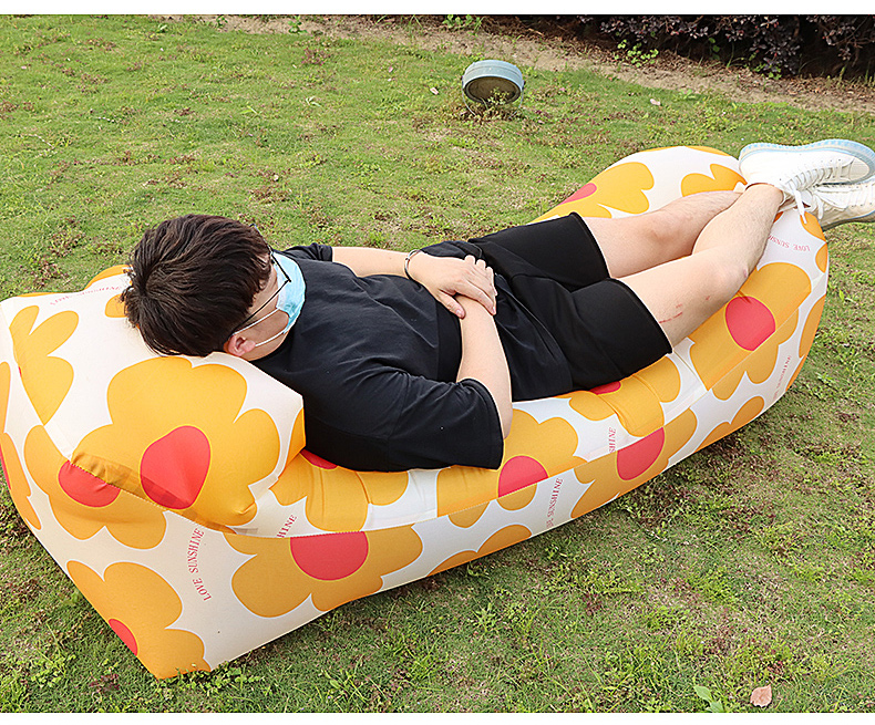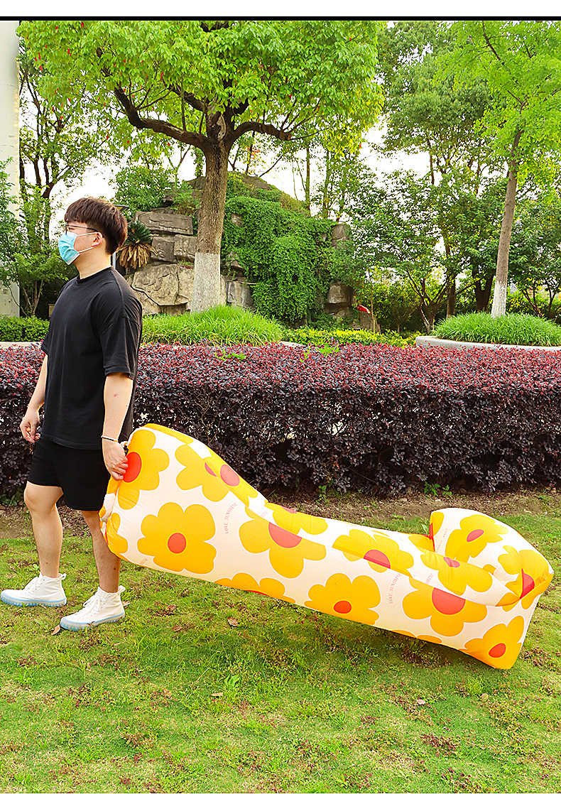 尤池哩户外充气沙发带头枕懒人空气床单人充气垫子便携折叠趟椅音乐节 3秒充气-太阳花头枕款 180*70*50cm(冲完气)