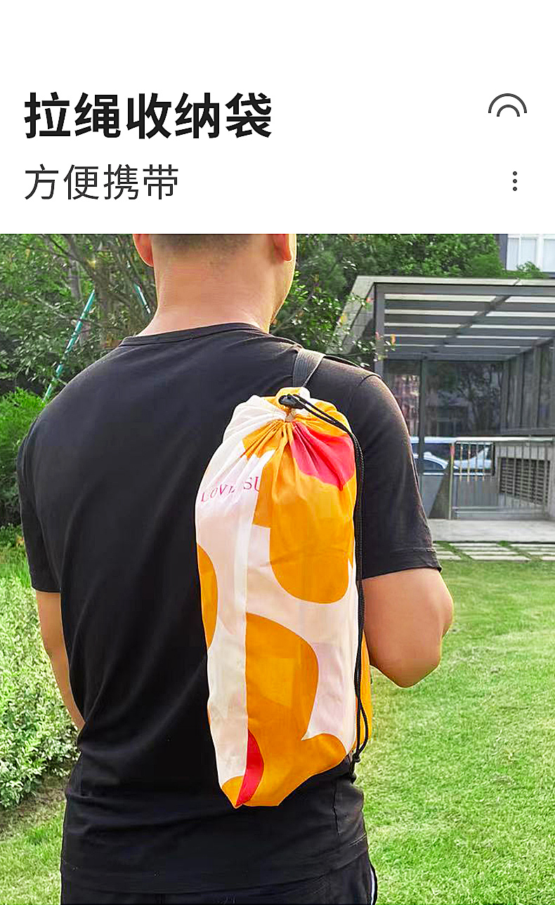 回家就打开了,用风扇就能吹开,收起来也很小,跟其他装备放一起啥也看不出来 使用的话,太多人就会崩开,不是直接坏掉这点很好。 上面的花纹有点过于花哨,而且沾了汗水有掉色迹象。