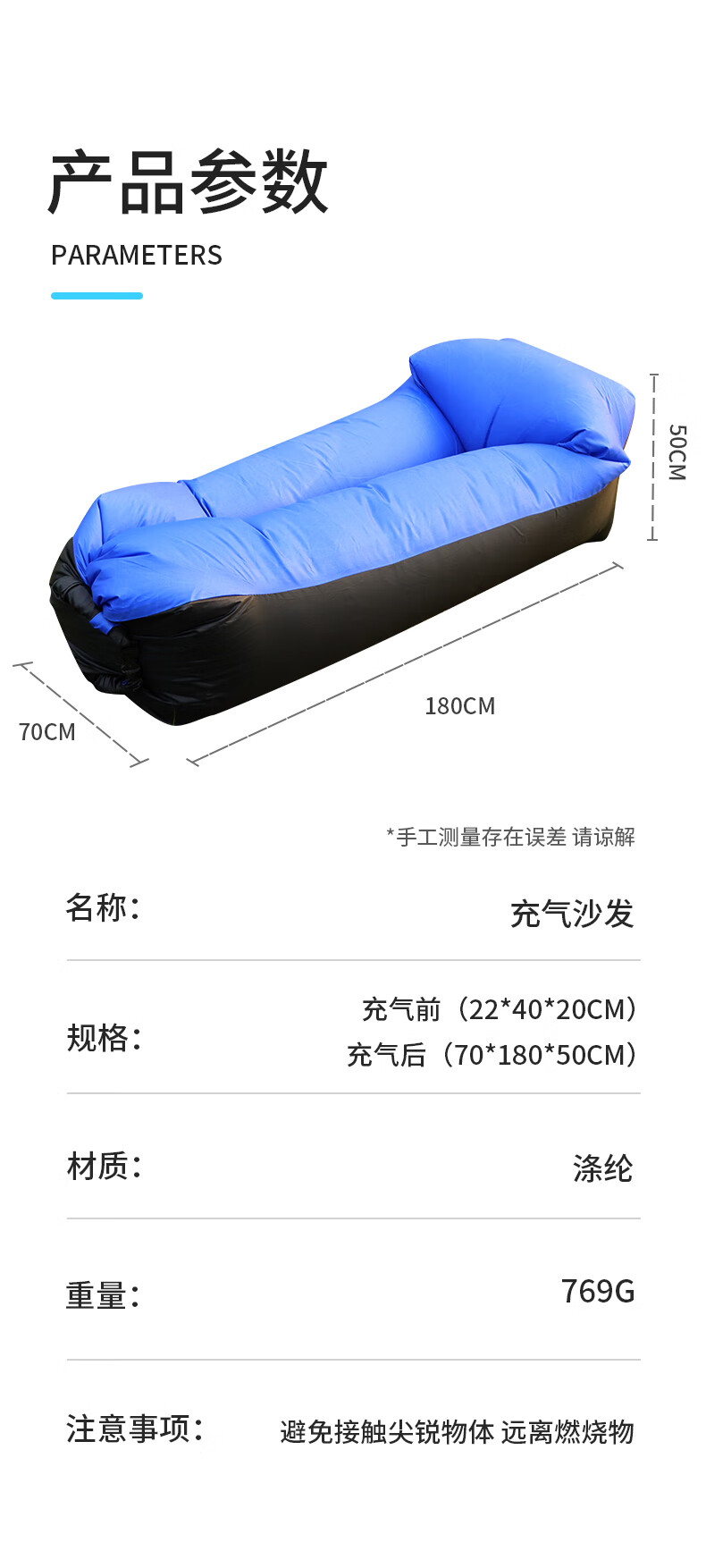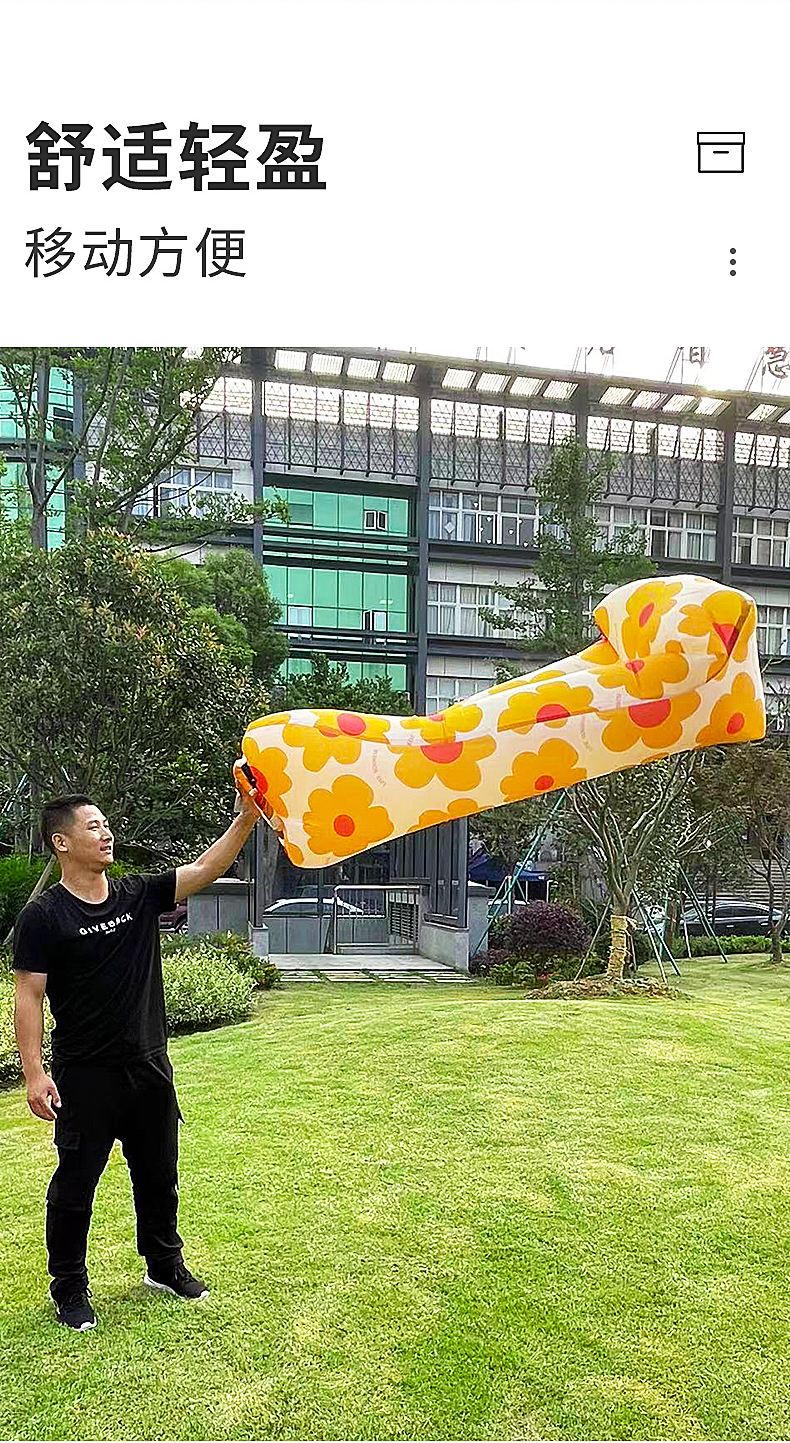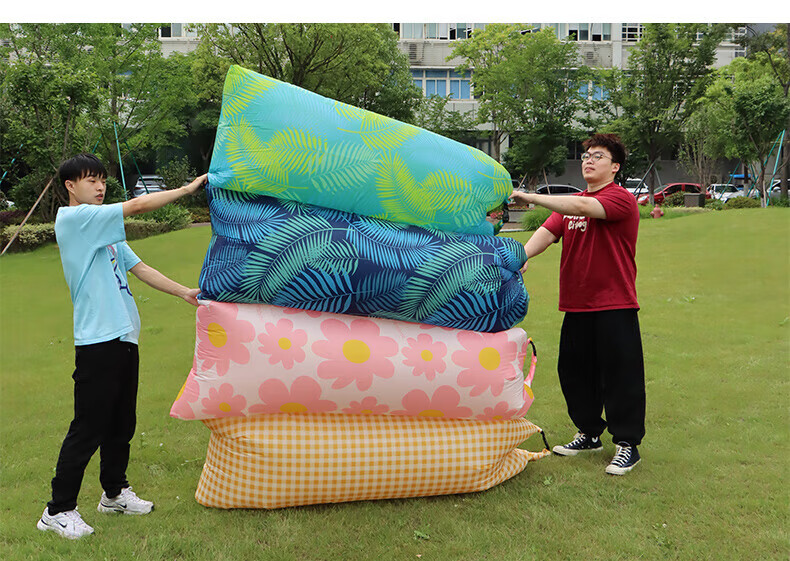 非常方便,喜欢户外活动的可以冲 质量也不错 有风的情况下充气很快,打开风口跑几步就灌好了 收纳方便,不占地方 可以当沙发用,也可以躺在上面 我们旁边的人投来了羡慕的眼光 出去搭帐篷必备的物品