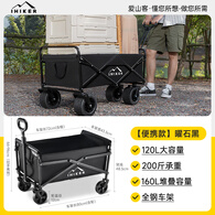 爱山客露营车户外折叠推车野营手推车露营野餐装备拖车手拉车桌板 160L 曜石黑【实心万向轮】 全钢车架