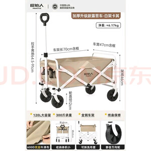 原始人(The Primitive)露营推车户外折叠推车儿童可躺野餐营地野营旅行小拖车轻便手拉车 160L 升级加厚款白架卡其-万向轮