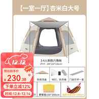 原始人帐篷户外六角野营加厚防雨露营装备全自动野外便携式帐篷 杏米白大号+防潮垫+野餐垫+吊床